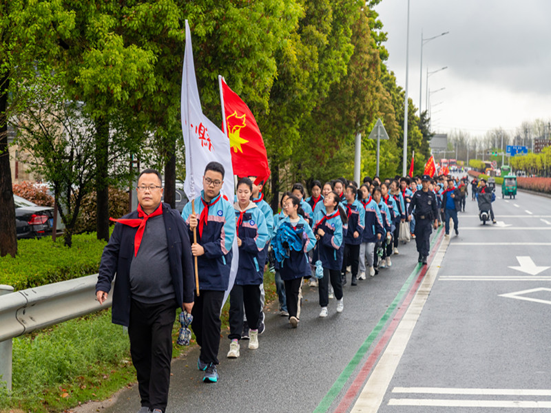 濛濛细雨,阵阵微风,丝毫没有挡住二中人缅怀先烈、寄托哀思的热情。上午九点,参加活动的师生从学校准时出发,他们排着整齐的队伍,迈着有力的步伐,徒步前往皖南事变烈士陵园。