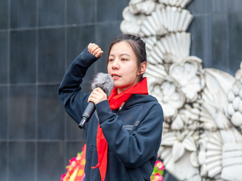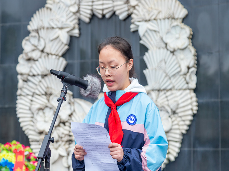 来自七年级2班的佘怡璇同学作为少先队员代表发言,她代表全体队员表达了对革命先烈的缅怀之情,表示要学习英雄的大无畏精神,继承先烈遗志;要拥有树立新风、励志成才的情怀,做一个有主人翁意识的新时代好学生。