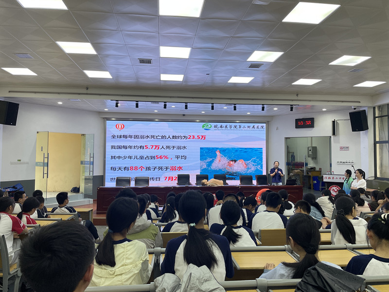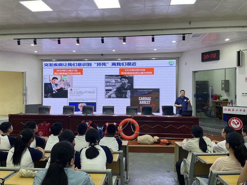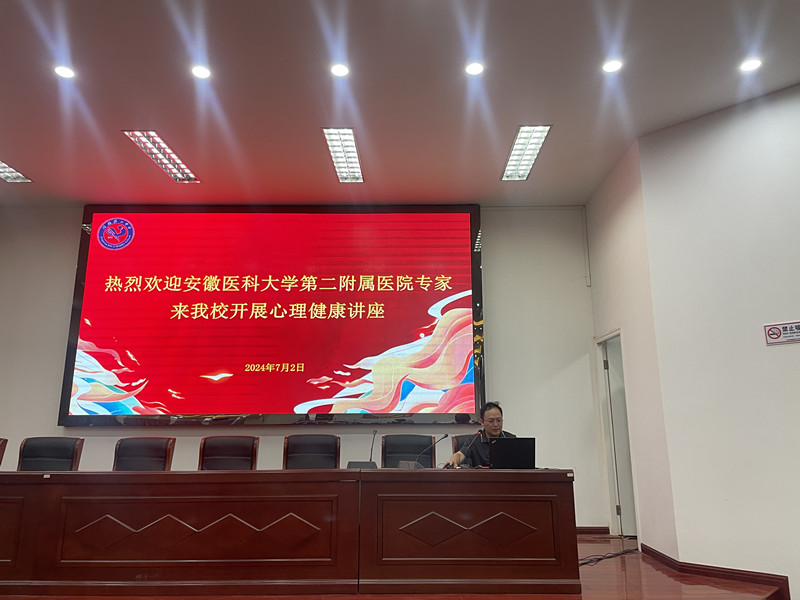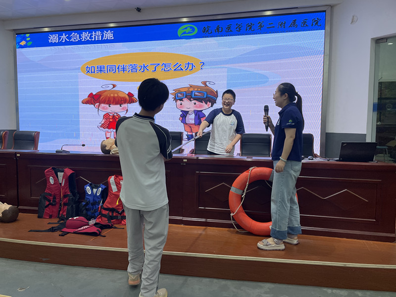 来自皖医二附院的急诊医学科护师王兵、周婷,分别带领学生们学习心肺复苏的正确操作流程、海姆立克急救法、防溺水急救科普,他们现场演示技能,指导讲解,与学生们积极互动,让学生们明白急救的每一步骤和重要性。安医二附院心理科主任耿峰围绕“如何解决中学生心理健康问题”这一主题,给学生们带来一场精彩的心理健康教育讲座,在互动环节,耿峰针对每个孩子的提问,逐一进行耐心解答。