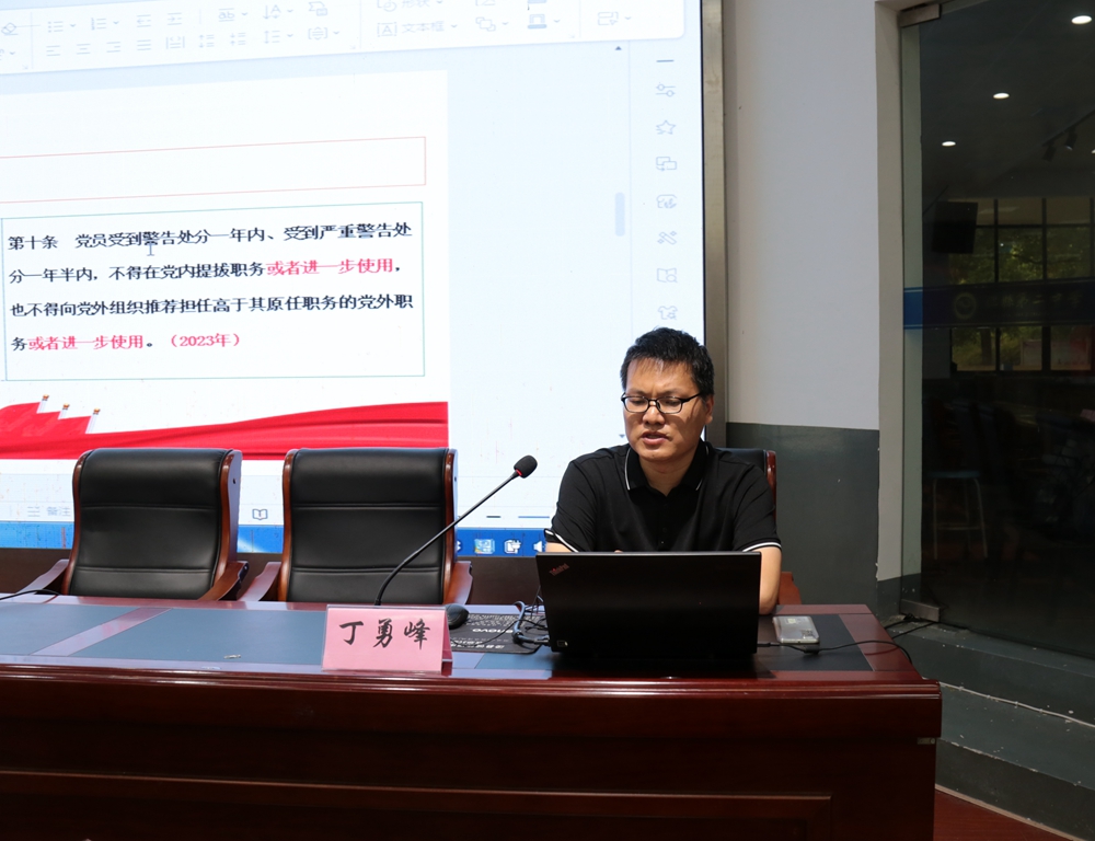 县纪委监委第四纪检监察室主任、泾县二中廉政教育副校长丁勇峰同志围绕学习新修订的《中国共产党纪律处分条例》,从深刻领悟《条例》修订的重大意义、准确把握《条例》修订的主要内容、切实抓好《条例》贯彻执行等方面,作了深入讲解和系统辅导。
