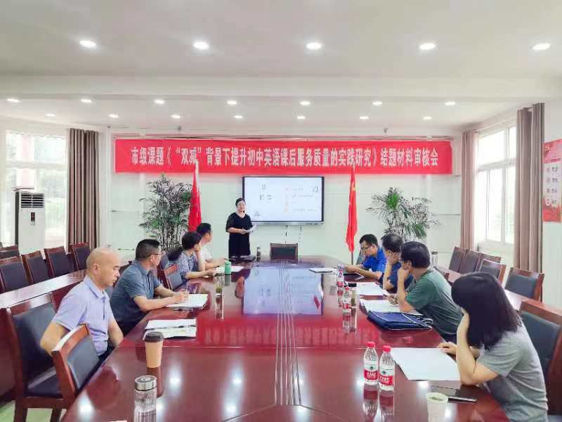 7月19日下午,市级课题《“双减”背景下提升初中英语课后服务质量的实践研究》结题材料审核会在我校顺利举行。县教研室郑宗明主任、阚晓华副主任、朱俊副主任和王西云老师莅临指导结题工作。我校副校长王松华、教科室主任汪汉旗及课题组全体成员参加了此次结题材料审定会。