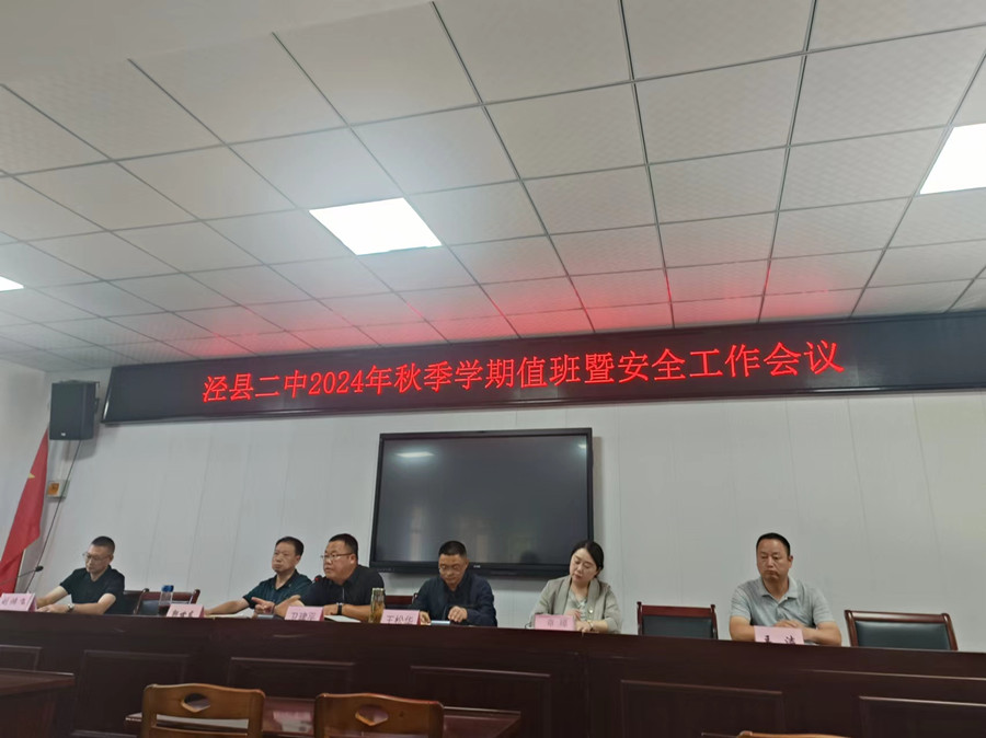 会议开始,由刘鸿飞带领大家再次学习《泾县二中安全管理工作要求》,使全体行政人员进一步明确了值班工作的具体内容和要求;副校长郭世东在传达市视频安全工作电话会议精神的基础上,要求行政值班人员、保安人员、宿舍管理人员明确各自职责,并对加强国庆期间校园值班工作进行布置,对加强安全宣传教育进行强调。