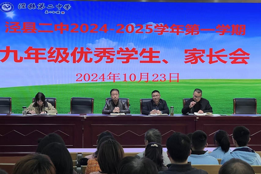 为表彰先进、鼓舞斗志,加强家校之间的沟通与合作,我校于10月23日下午在阶梯教室召开了九年级优秀学生和家长会。校党委书记王松华、副校长郭世东、教导处人员参会,会议由教导处主任章志明主持。