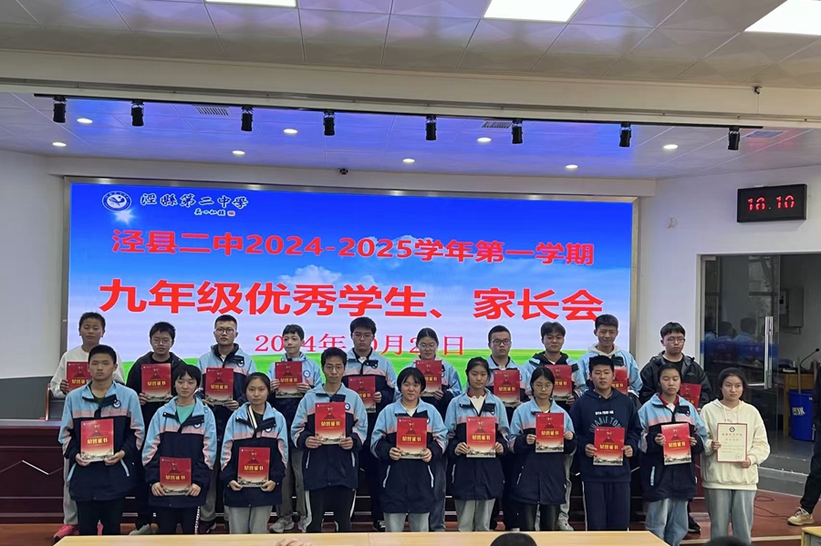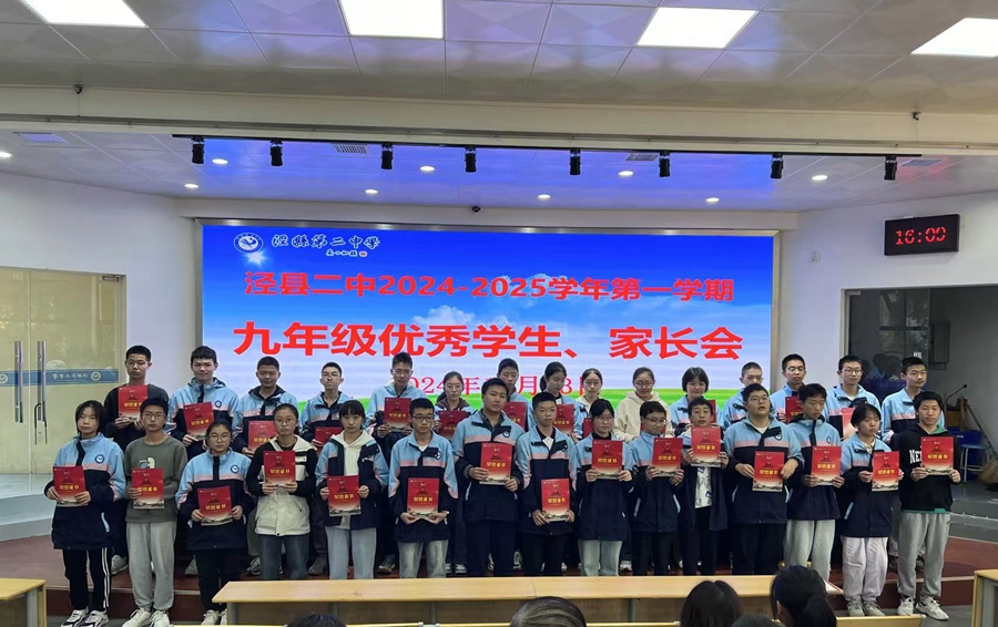 教导处主任章志明宣读了九年级优秀学生名单,校领导为优秀学生颁发奖状,并合影留念。