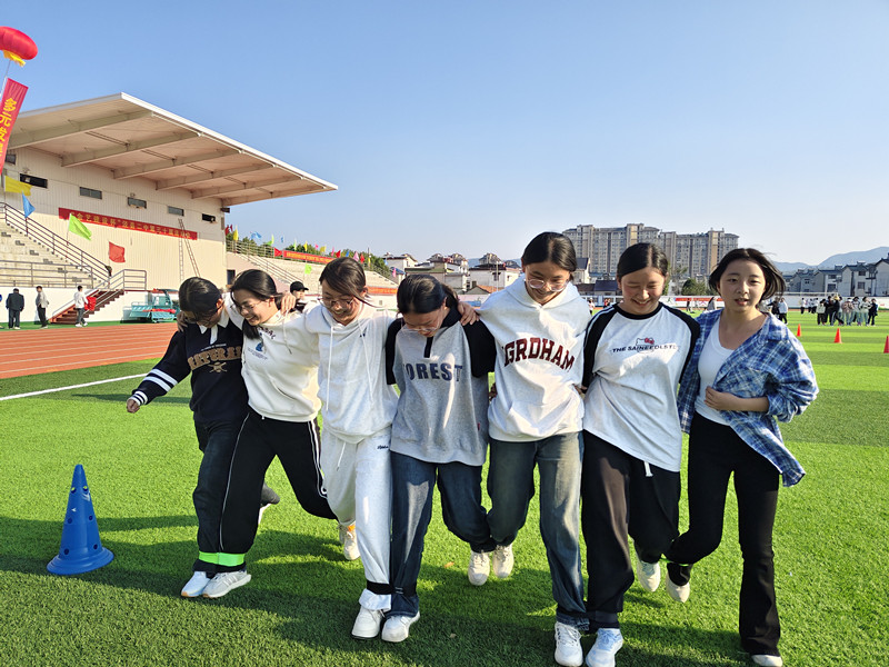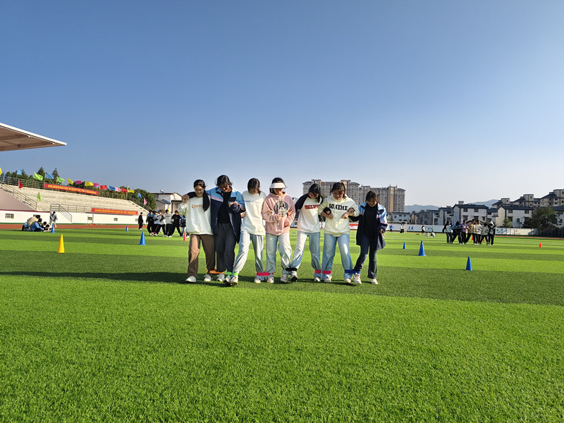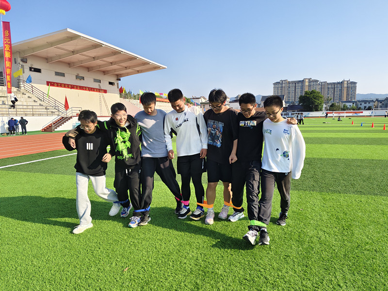 趣味运动会上,分班级进行了和谐共进比赛,有三人四足、五人六足、七人八足,同学们热情高涨、团结拼搏,以拧成一股绳的劲头奋勇争先。全场欢呼声、加油声此起彼伏,掀起了运动会的阵阵高潮,大家都尽情享受着趣味运动和汗水挥洒带来的快乐,运动场上洋溢着团结、拼搏、健康欢乐的体育氛围。