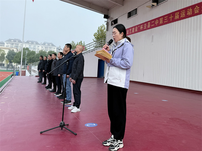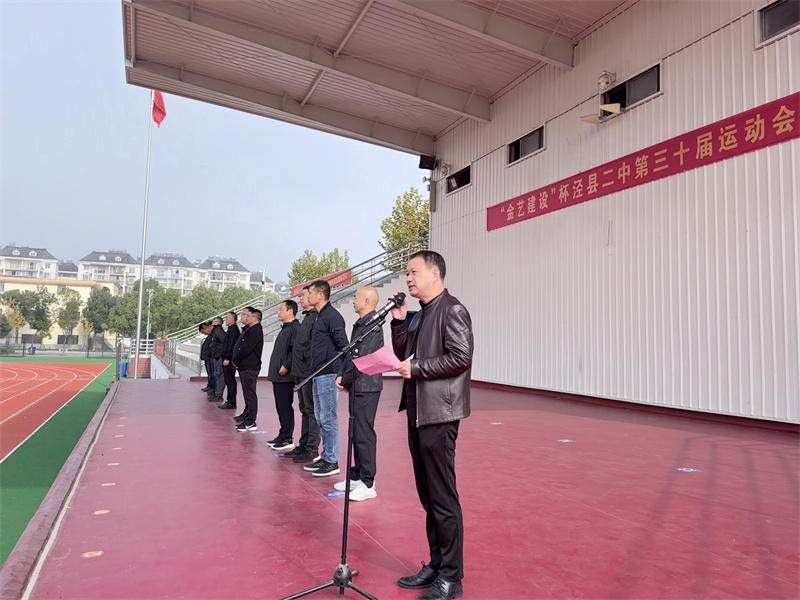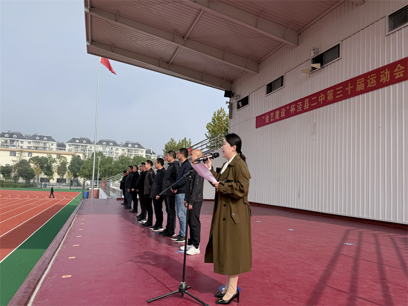 2024年11月4日上午,泾县第二中学全体师生齐聚校运动场,举行 “金艺建设杯”第三十届运动会闭幕式。仪式由副校长章璋主持。