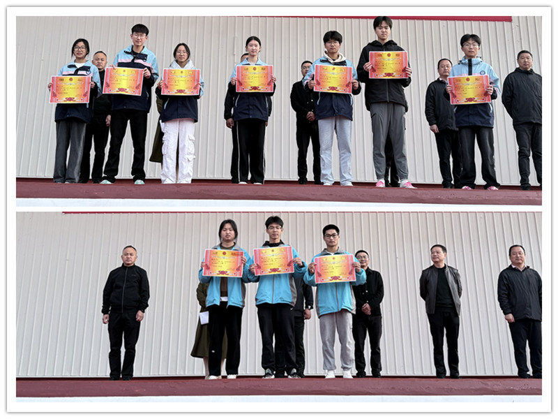 庄严的升旗仪式后,运动会总裁判长张瑞宣读了运动会团体成绩和获奖班级名单。学校领导班子成员以及各处室负责人为获奖班级颁奖。