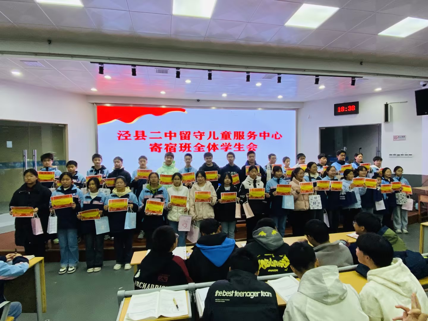 为关爱留守儿童,促进其全面发展,我校留守儿童中心于2024年11月28日举办了一场留守儿童全体学生会。会上,对在各方面表现突出的文明宿舍和优秀学生进行了表彰。