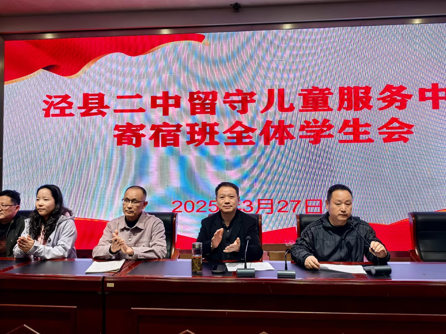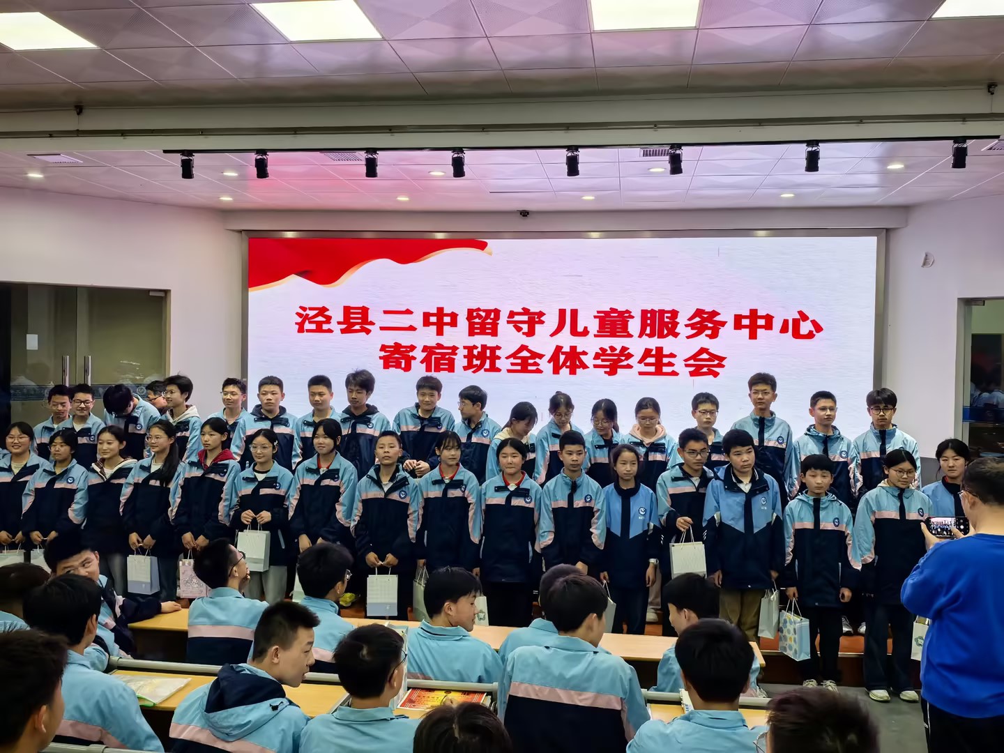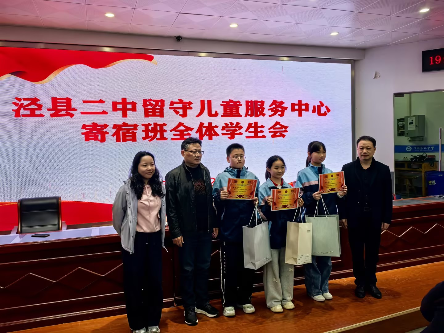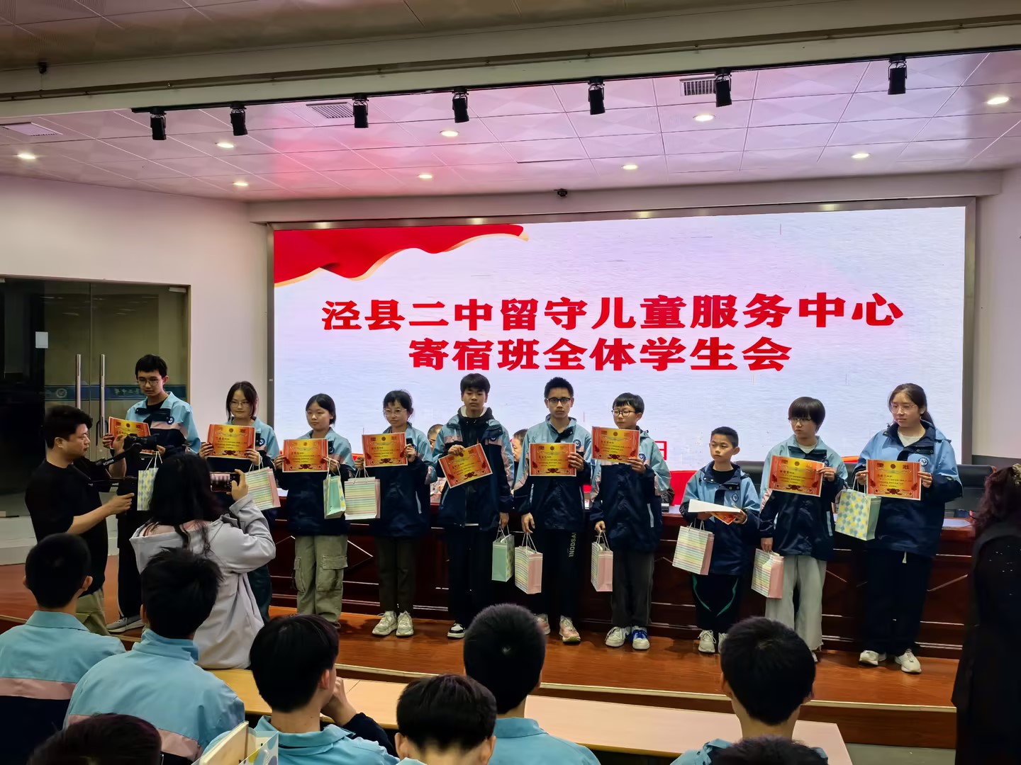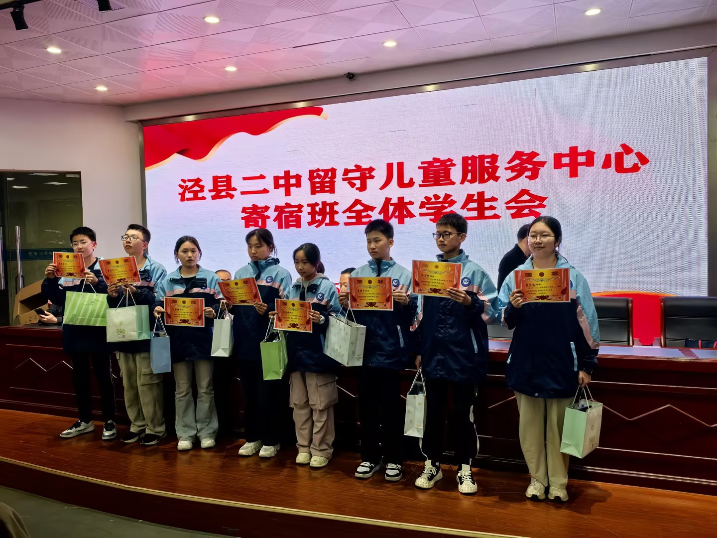 2025年3月27日晚,泾县二中留守儿童服务中心在学校阶梯教室召开寄宿班全体学生会,表彰了在行为习惯、学习和品德方面表现优秀的学生,为班级之星、学习之星、进步之星、优秀寝室长以及文明寝室颁发荣誉,激励全体学生在学业和品德上追求卓越。