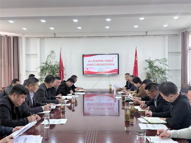 为积极响应党中央重大决策部署以及省委、市委、县委和教体工委工作要求,进一步加强学校作风建设,推动学校高质量发展,2025年4月8日下午,我校在行政楼第一会议室召开深入贯彻中央八项规定精神学习教育动员部署会。学校党委领导班子成员、各党支部书记及支部委员、各职能处室负责人参加会议。会议由校党委副书记、校长卫建平主持。