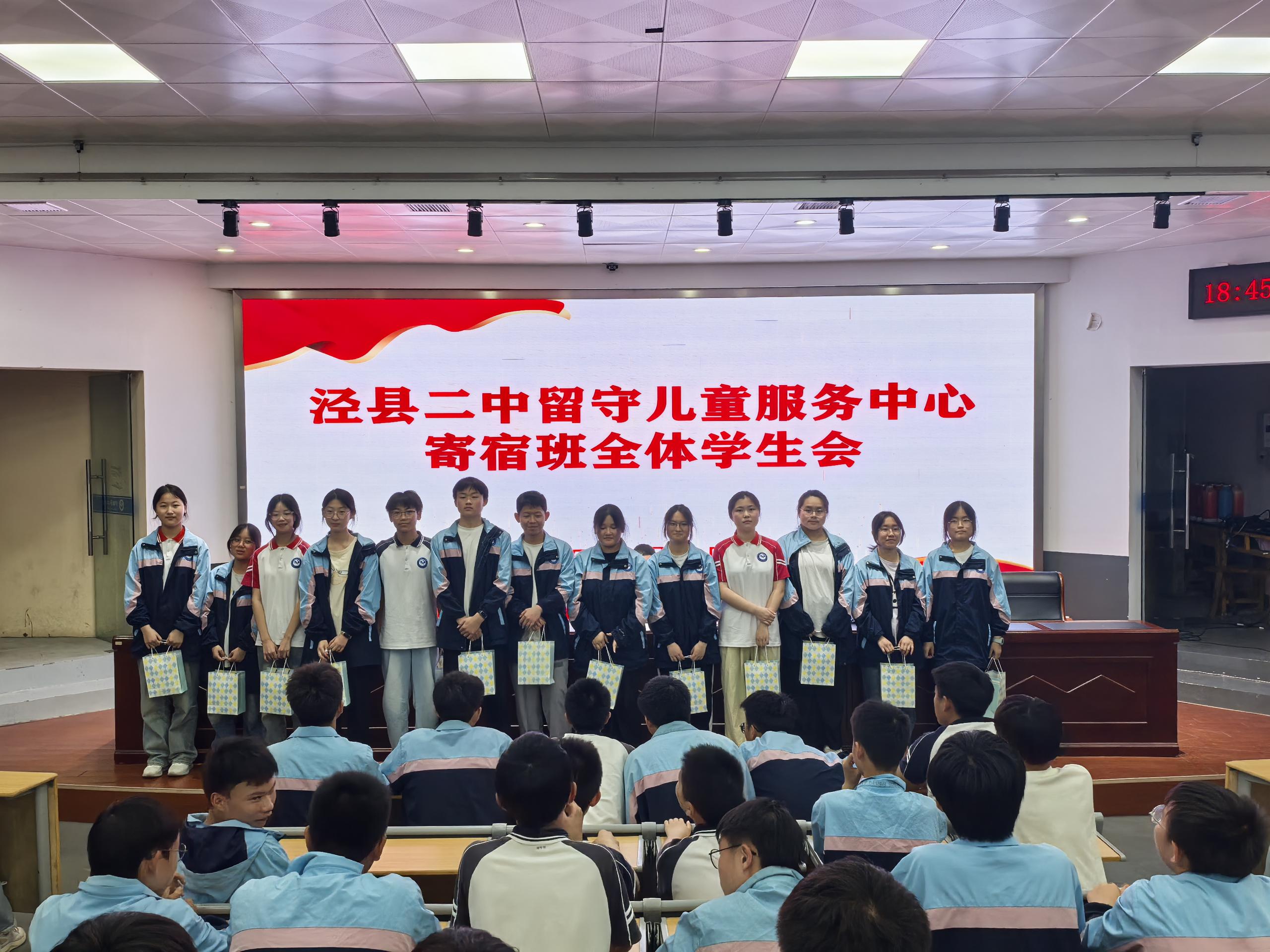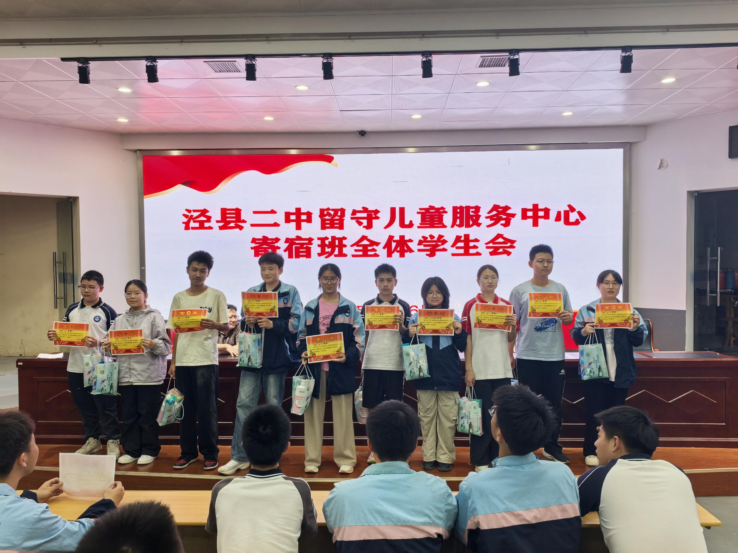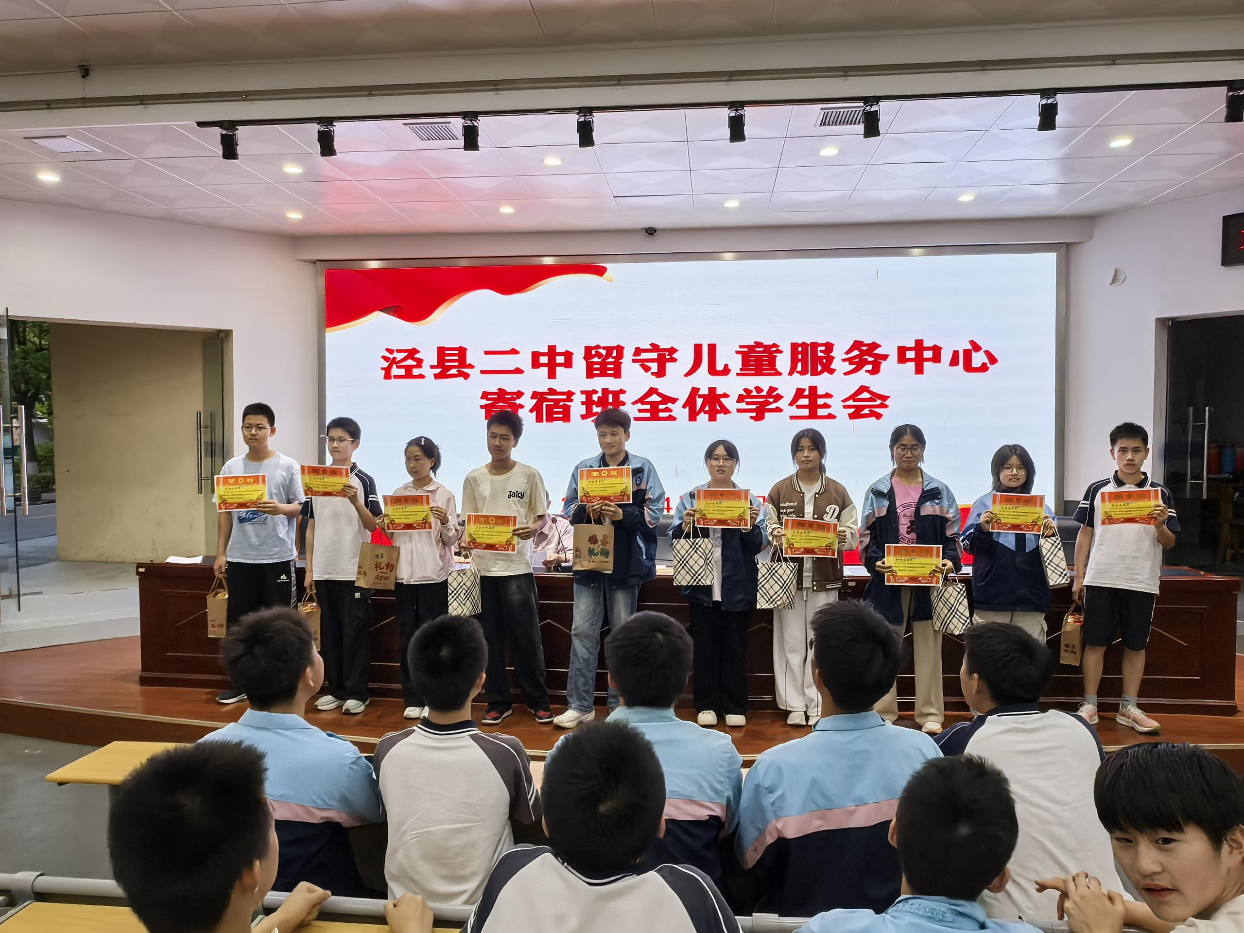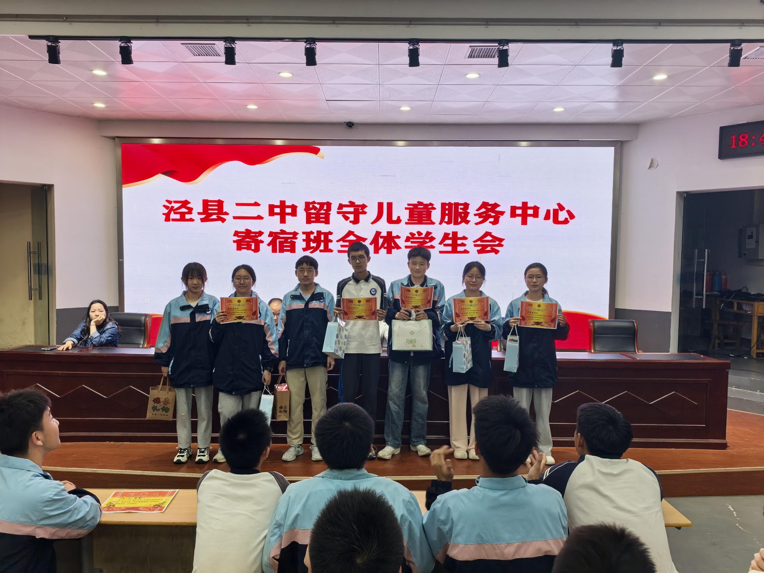 4月26日,泾县二中留守儿童服务中心在学校阶梯教室召开了四月份寄宿班全体学生会,对在行为规范、学习成绩及宿舍管理等方面表现突出的个人与集体进行了表彰。