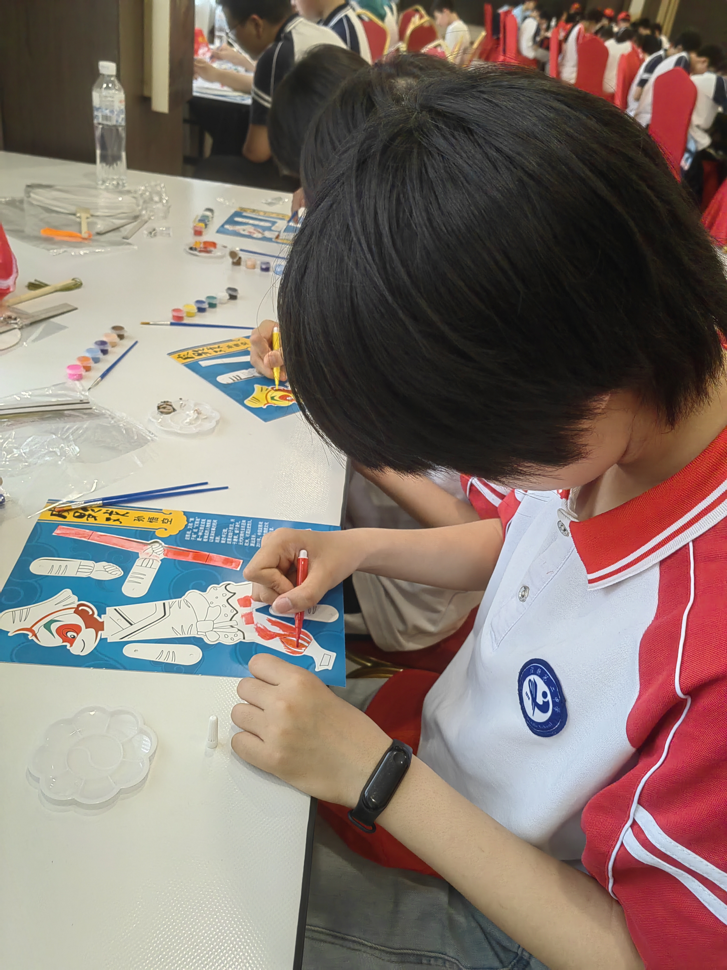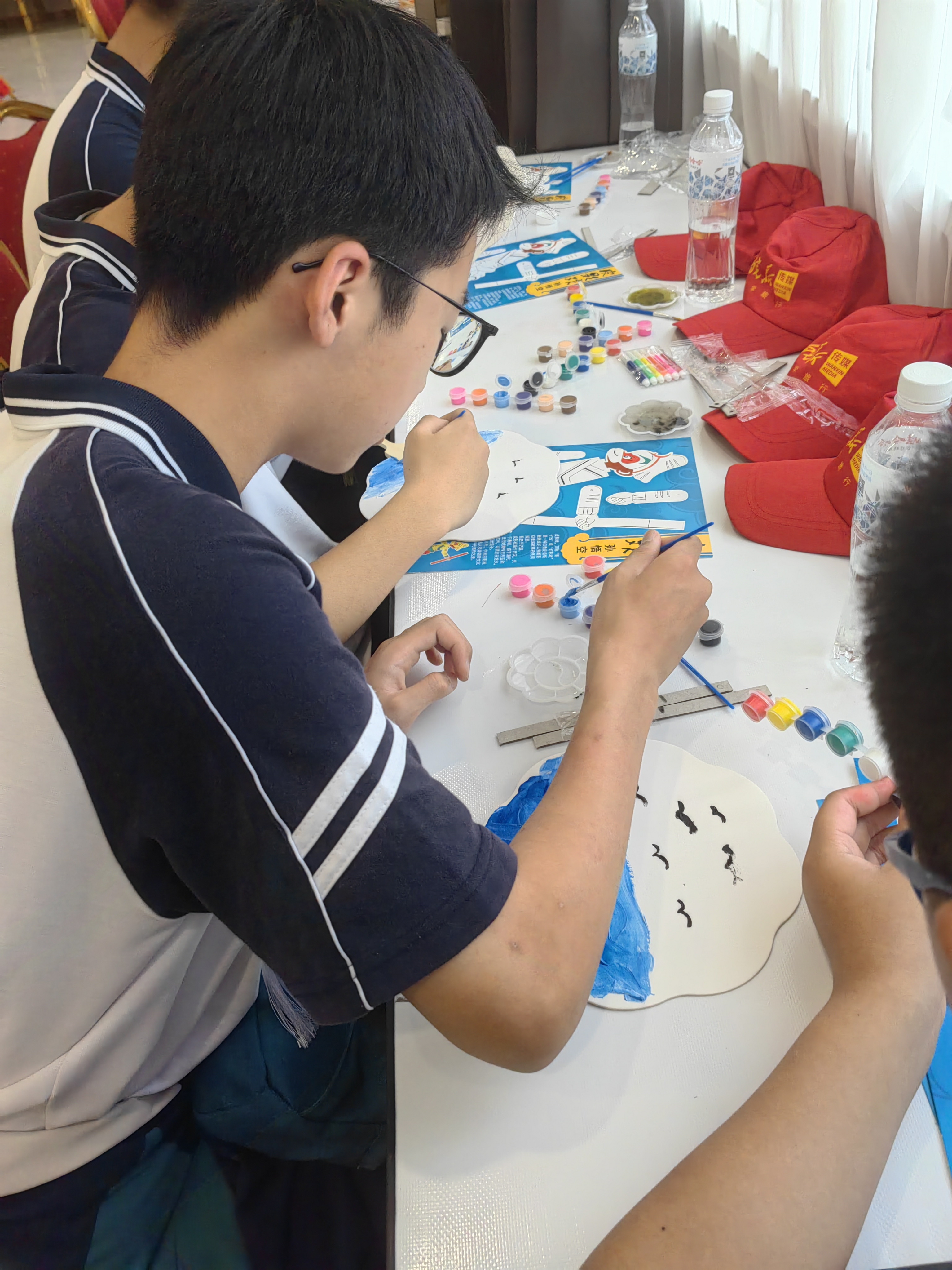 同学们还尝试了制作宣扇,他们执笔挥毫,让素白扇面焕发青春创意。