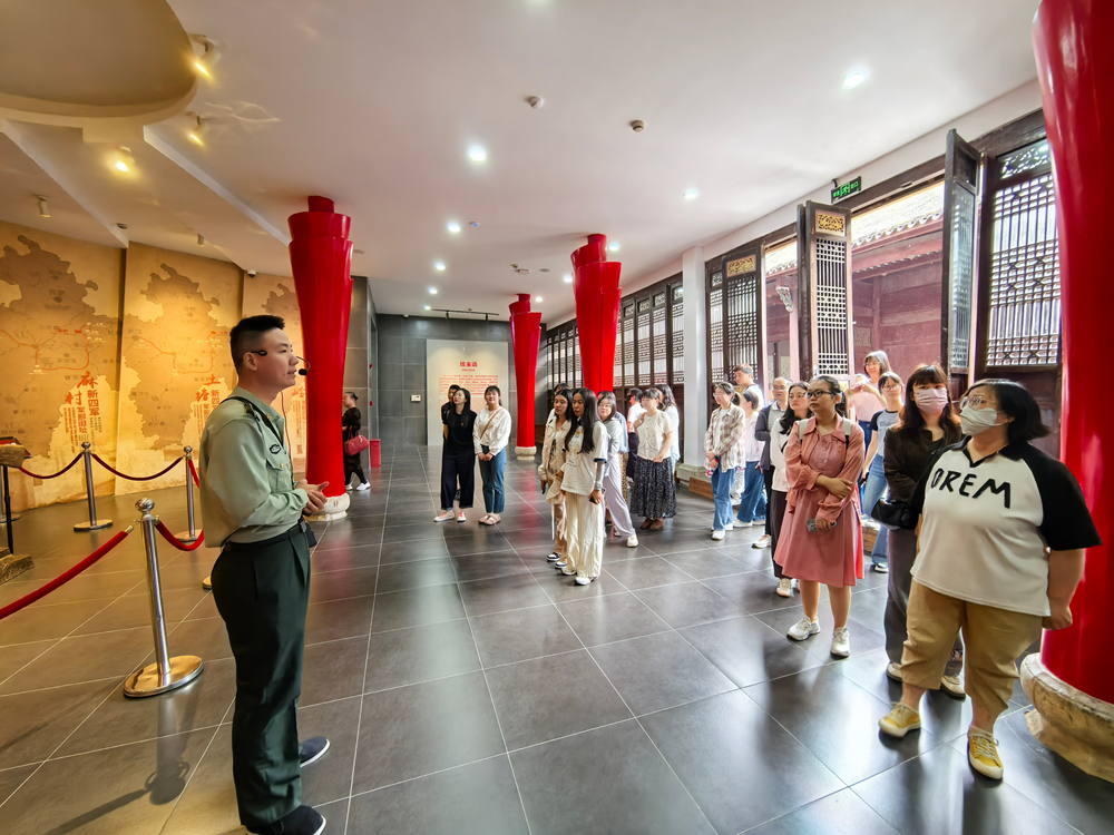 在讲解员的带领下,青年教师们参观了新四军军部旧址、军部大会堂等革命遗址。珍贵的历史文物、泛黄的文献资料和生动的影像图片,再现了新四军将士浴血奋战的峥嵘岁月。驻足凝视间,仿佛穿越时空隧道,参观者无不为之动容。