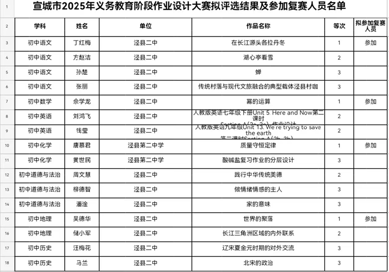 喜报‖我校教师在宣城市2025年义务教育阶段作业设计大赛中喜获佳绩