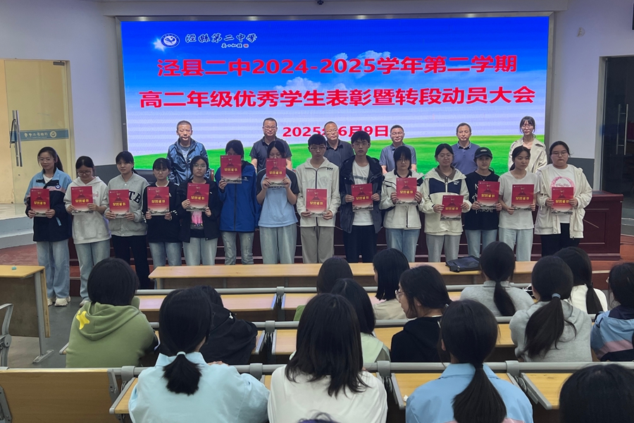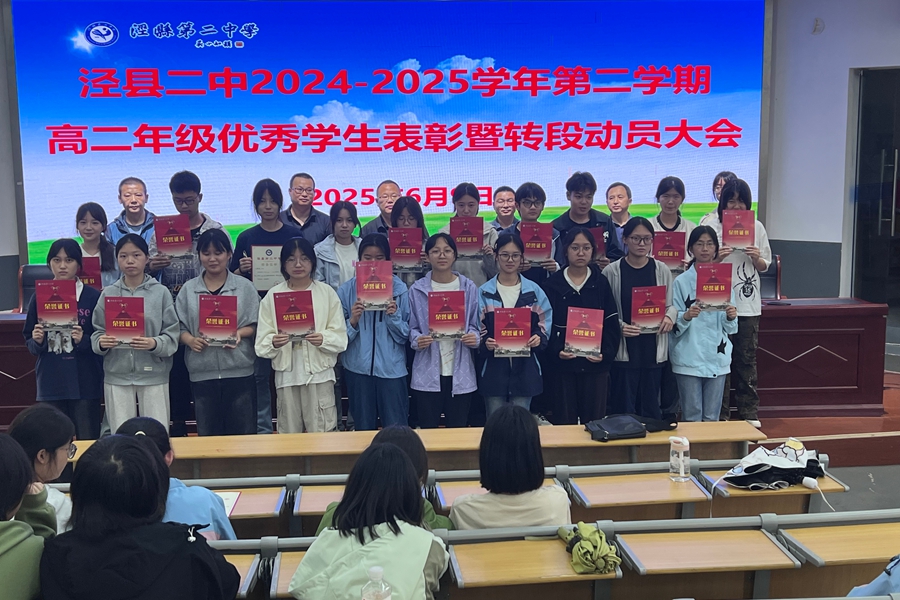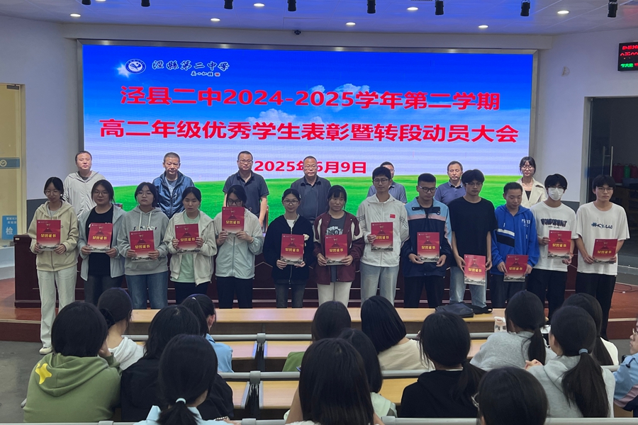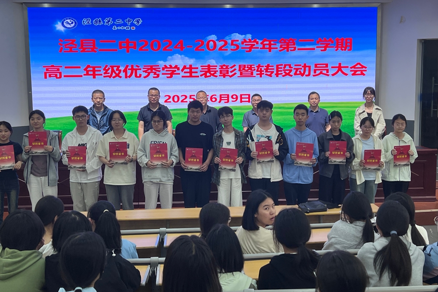 为表彰先进,鼓舞士气,明确目标,坚定信念,我校于6月9日下午在阶梯教室召开2024-2025学年第二学期高二优秀学生表彰暨转段动员大会。校领导、相关科室、全体高二班主任和学生参会,大会由校党委书记王松华主持。