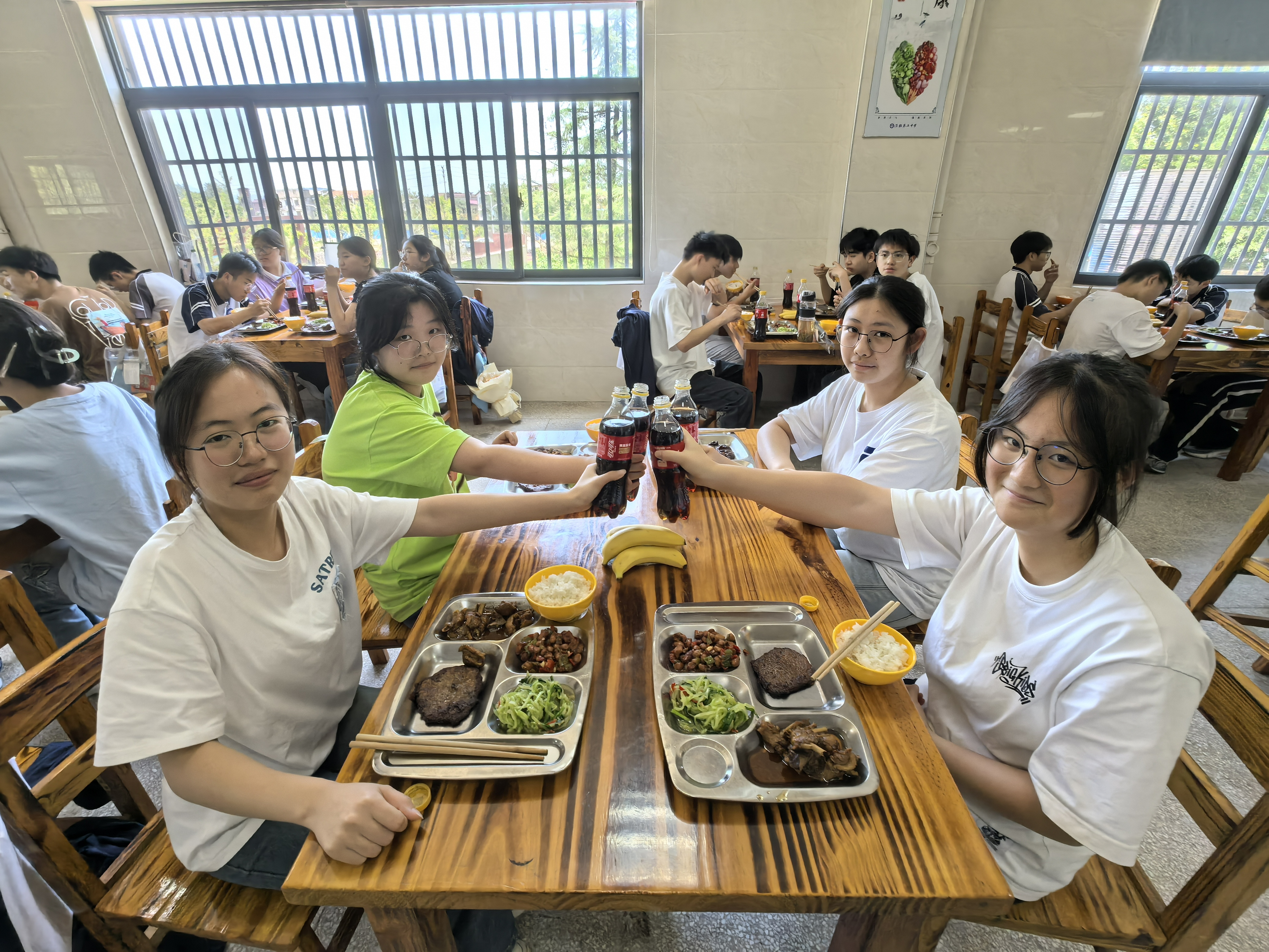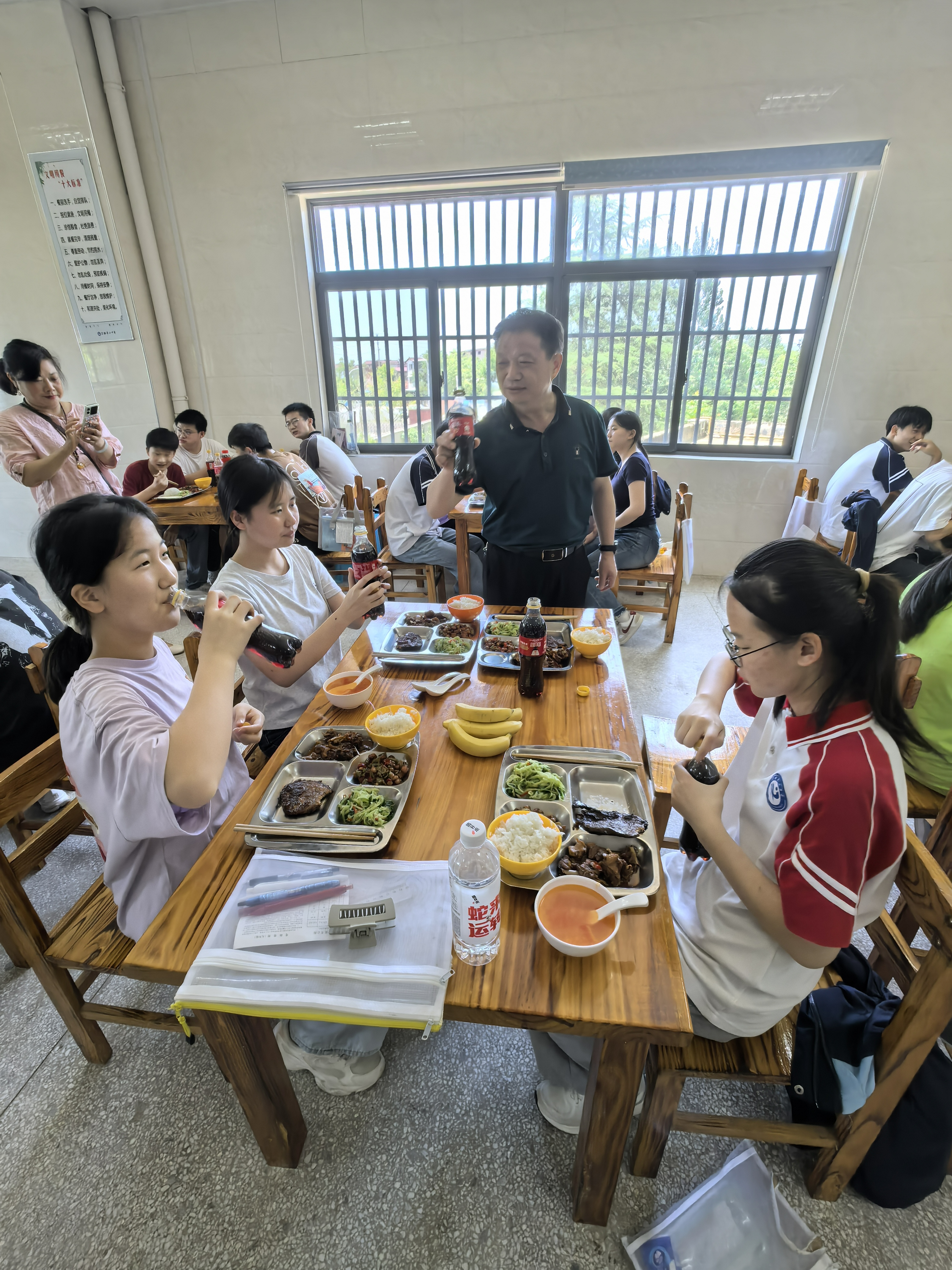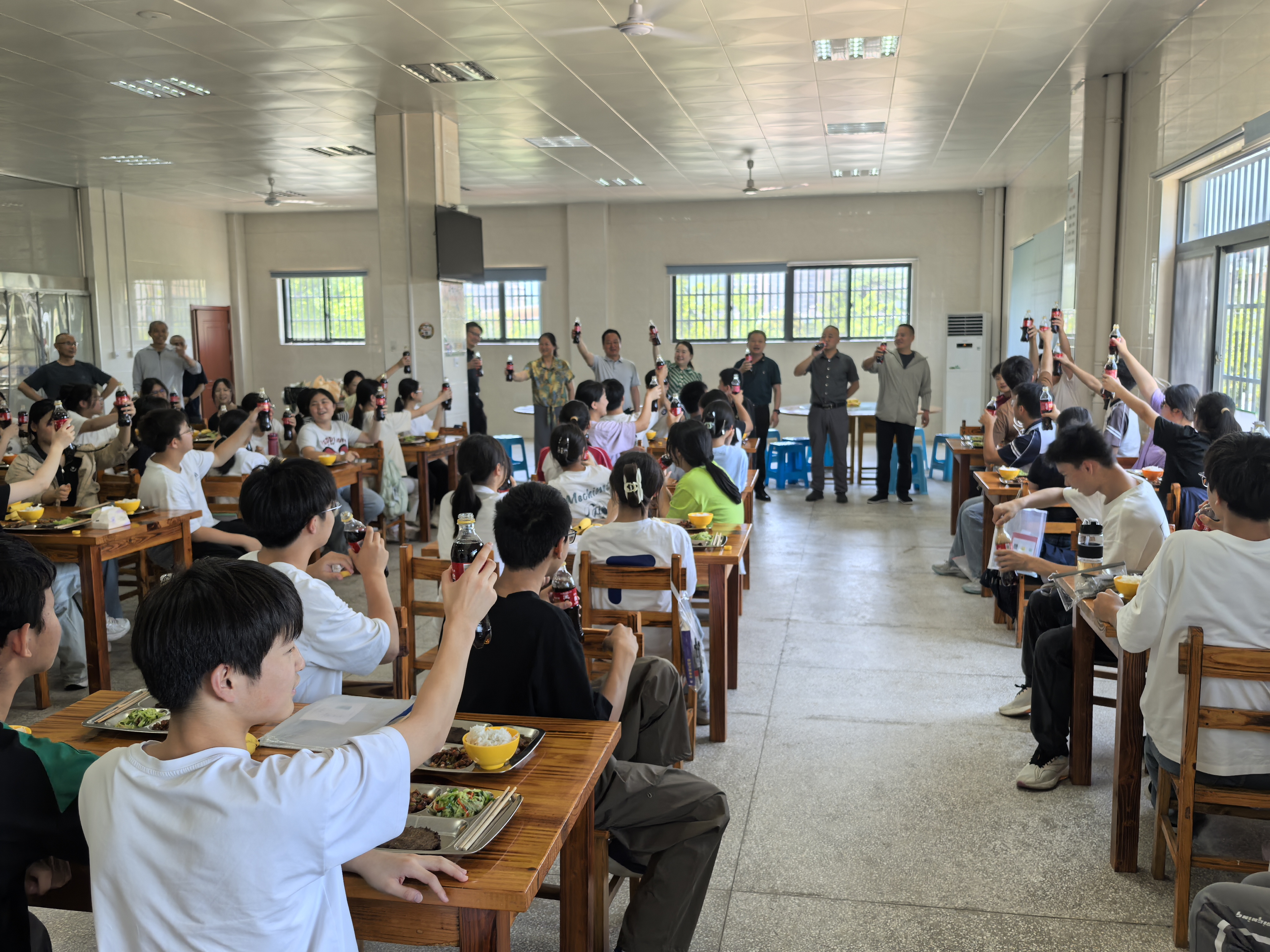 2025年6月16日中午,中考刚刚结束,泾县二中留守儿童服务中心在学校食堂二楼为赴考返校的九年级寄宿班毕业生准备了丰盛的午餐,为朝夕相伴三年的学子们送上一份温暖。学校党委委员、副校长郭世东、章璋等校领导以及服务中心的师生把手言欢,依依话别。校领导和各位老师为同学们送上祝福,并叮嘱大家今后继续努力,为更加美好的人生而奋斗!