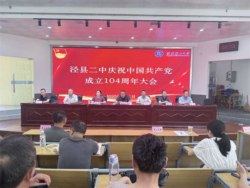 在中国共产党成立104周年之际,为弘扬伟大建党精神,增强党性修养,扎实推进深入贯彻中央八项规定精神学习教育,深化作风建设,凝聚奋进力量,7月1日上午,泾县二中全体党员齐聚校阶梯教室,召开庆祝中国共产党成立104周年大会。大会由校党委副书记、校长卫建平主持。