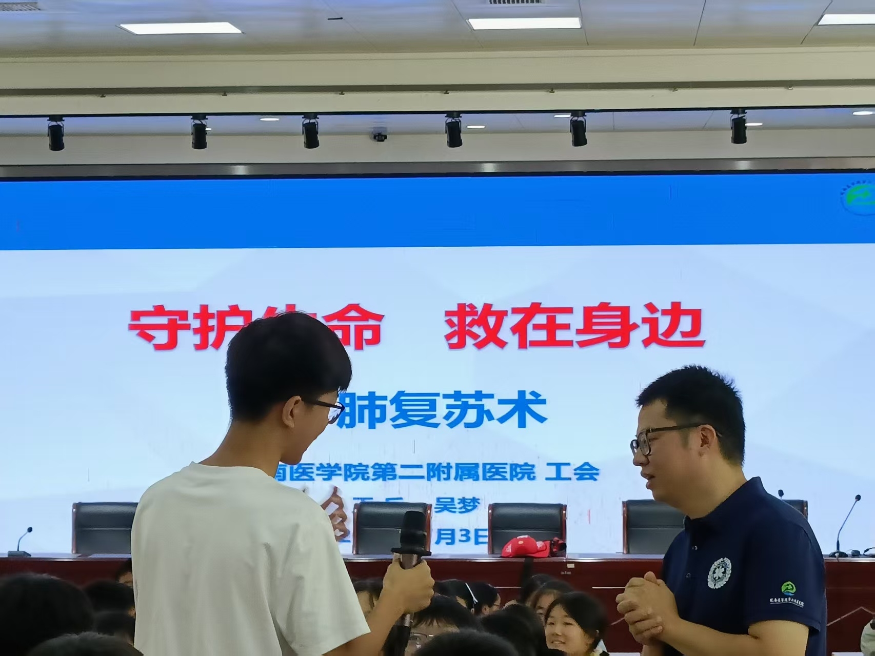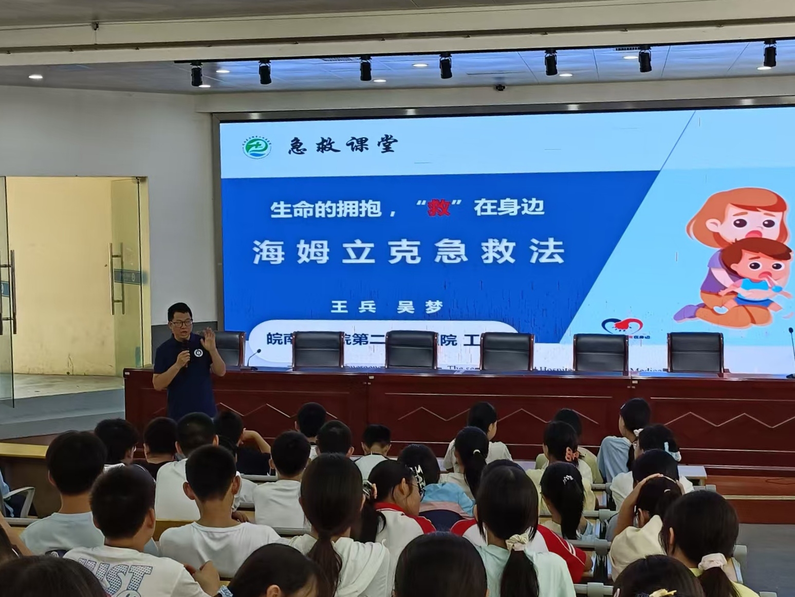 活动期间,一系列丰富实用的健康科普课程精彩呈现。在急救知识课堂上,医院专家围绕“守护生命 救在身边”主题,详细讲解心肺复苏术,通过人体模型现场示范操作要点,还与学生积极互动,指导他们上手实践;“生命的拥抱,‘救’在身边--海姆立克急救法”课程中,专家生动讲述该急救法原理与操作步骤,让学生们掌握应对异物梗阻的关键技能。同时,“珍爱生命 谨防溺水”讲座结合夏季特点,普及溺水危害、预防措施和自救互救方法,提高学生安全意识。此外,针对青少年生理健康需求,相关专家带来专业知识讲解,帮助学生正确认识自身生理结构和功能,树立健康生活理念。