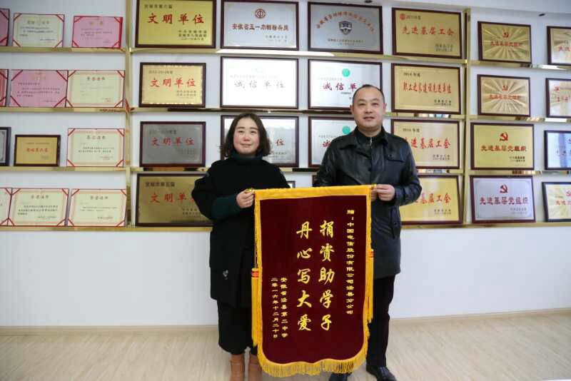 昨天下午,泾县二中章璋副校长带领学校工作人员将一面红底金字的锦旗送到了中国电信有限公司泾县分公司,上书“捐资助学子,丹心写大爱”,并送上了感谢信,代表泾县二中全体师生对该公司党员干部及热心员工的爱心行为表示了由衷的感谢和崇高的敬意!