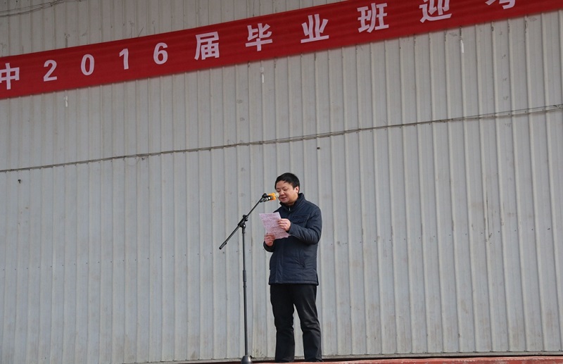 为迎战2016年高中考,给毕业班师生呐喊助威,2月29日上午9时30分,我校在运动场举行了“泾县二中2016届毕业班迎考百日冲刺动员大会”,大会由副校长朱轶材主持。