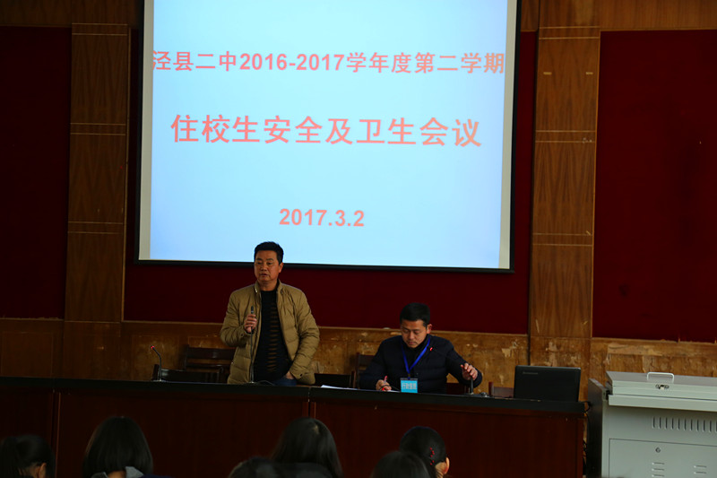 为维护正常教学、生活秩序,使学生有良好的学习、生活环境,培养学生自主、自理能力,使学生养成良好的生活和学习习惯、促进学生全面发展,我校于2017年3月2日中午在阶梯教室召开了全体住校生会议。会议由政教处张浩老师主持,政教处徐维主任、男女生寝室管理员以及全体住校生参加会议。