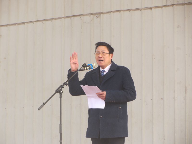 首先由学生代表吉华涛同学发言,他代表全体学生表明了面对中考的态度和决心,面临中考的压力,决不退缩,要以实际行动去冲刺、去拼搏,把握好最后的时间。