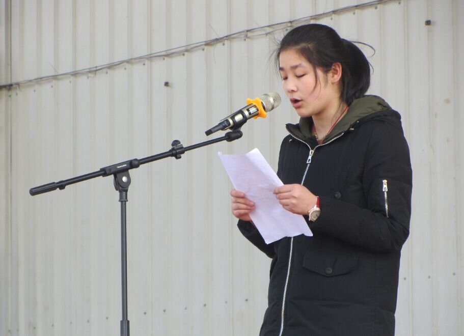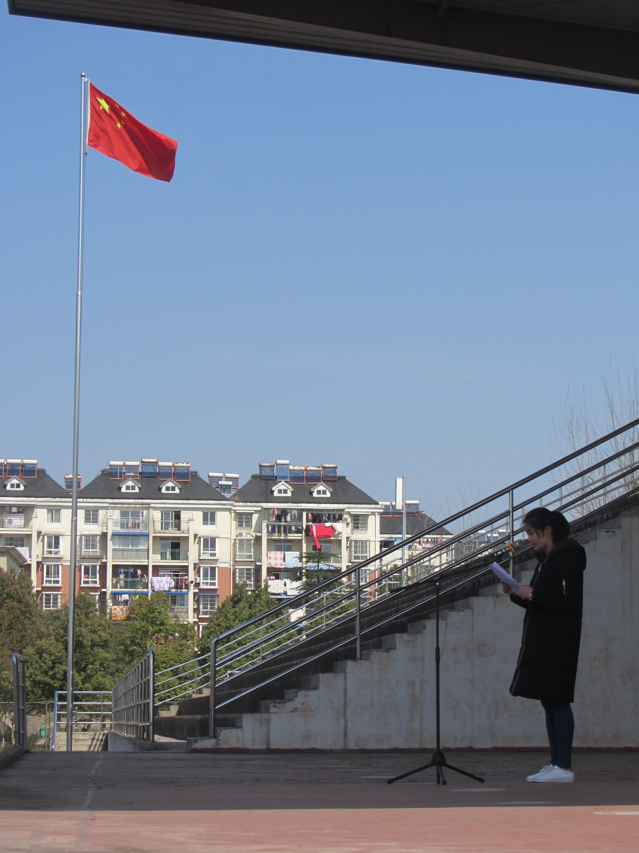 升旗仪式后,高二(3)班王子凤同学以“老师,让我轻轻地告诉你”为主题进行国旗下讲话。