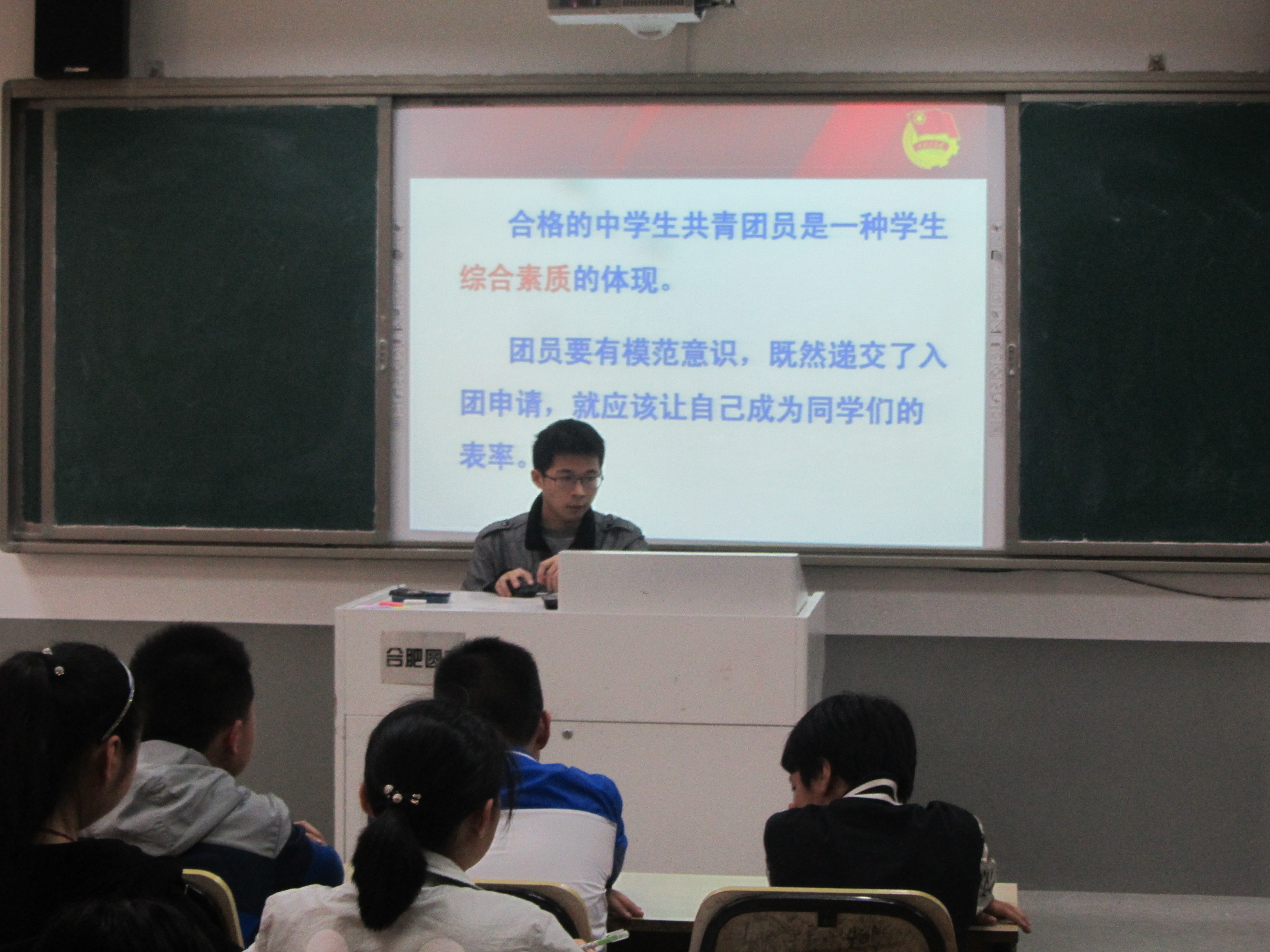 为迎接五四运动98周年和建团95周年,也为了进一步加强我校团员的政治思想观念,增强团员对团组织的深刻认识,4月27日中午,校团委在科学馆录播室对我校部分优秀团员进行了一次团课培训,校团委徐盛昊老师主持并主讲了题为《怎样做一名合格团员》的培训课程。