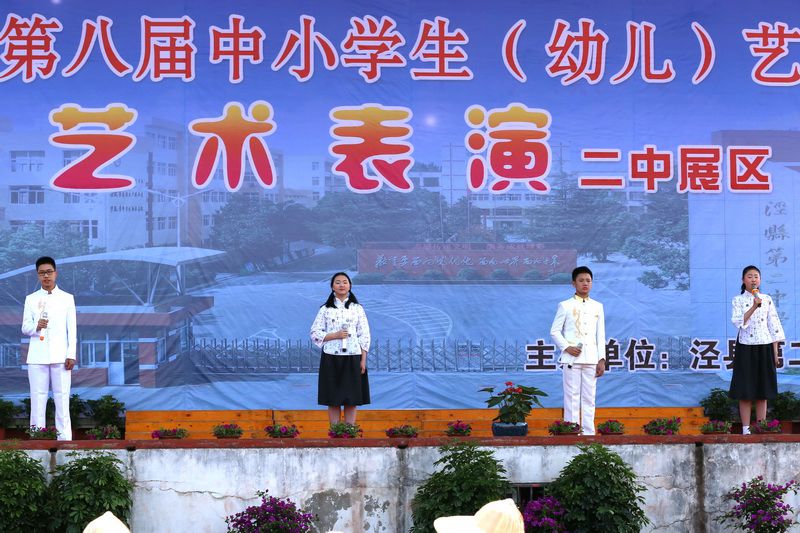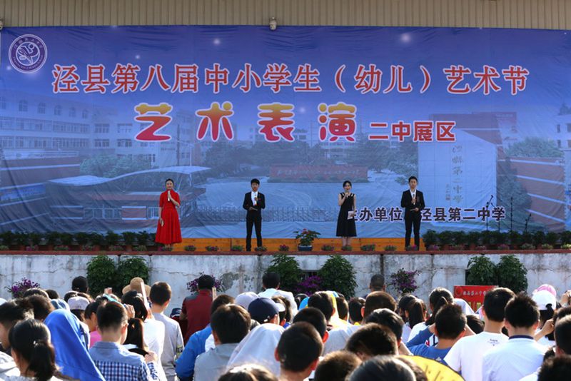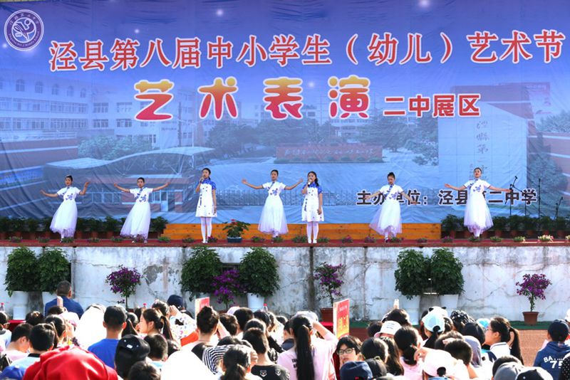 5月11日上午,泾县第八届中小学生(幼儿)艺术节艺术表演二中展区成功展演。县教体局工委委员、副局长徐磊、县教体局基教股副股长、业余体校校长徐志平、县教体局计财股郭红云老师、泾县中学朱丹老师及我校校领导、中层干部观看了演出。