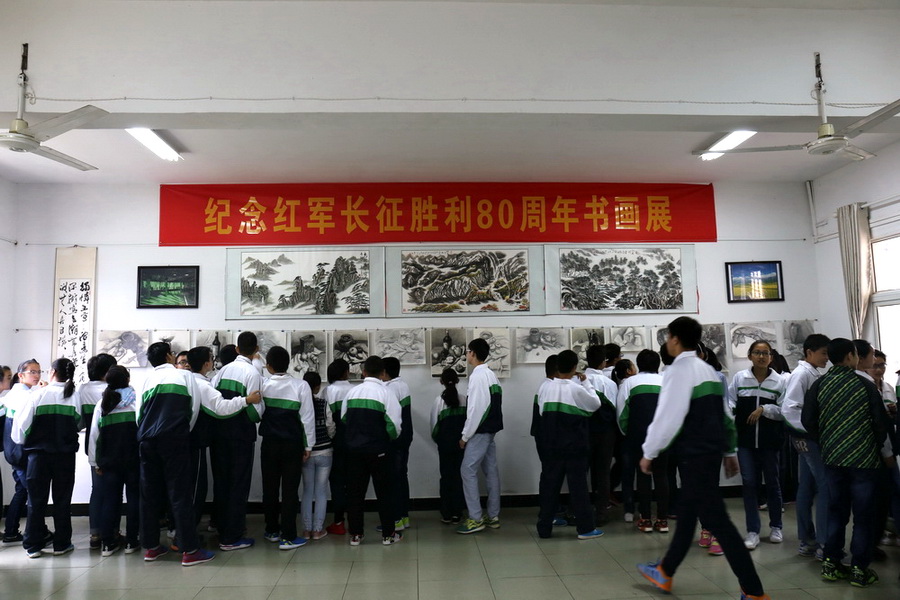 日前,由体艺处主办、泾县书法家协会二中分会协办的《纪念红军长征胜利80周年书画展》在校艺术楼展出。纪念红军长征胜利80周年书画展共展出学校师生作品80余幅(包括退休老师),以书、画等形式展现党的光辉历程,缅怀革命先辈的丰功伟绩,展现长征精神的历史内涵,弘扬爱国主义精神,用手中的笔墨描绘自己心中美丽的中国梦。校领导、师生及相关人员纷纷前往观展。