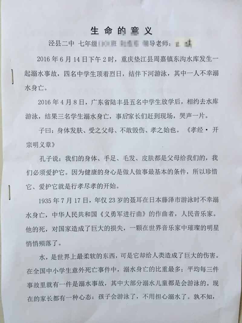 【学生防溺水征文】