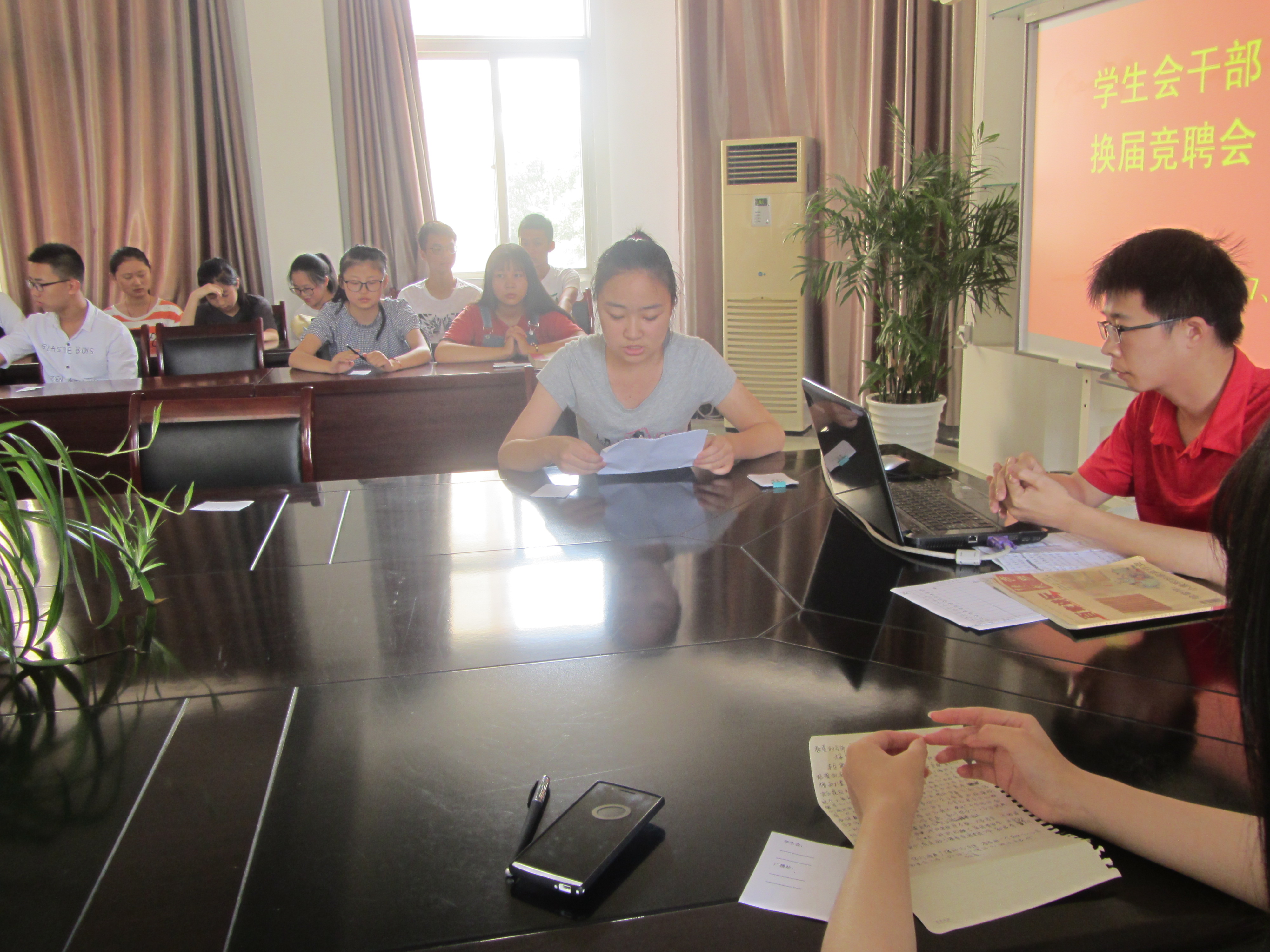 为进一步加强学生管理,发挥学生会作为联系学生和学校的桥梁、纽带作用,更好地促进学生参与学校的建设与发展,6月27日中午,我校学生会干部换届竞聘会在育才楼二楼会议室隆重举行。