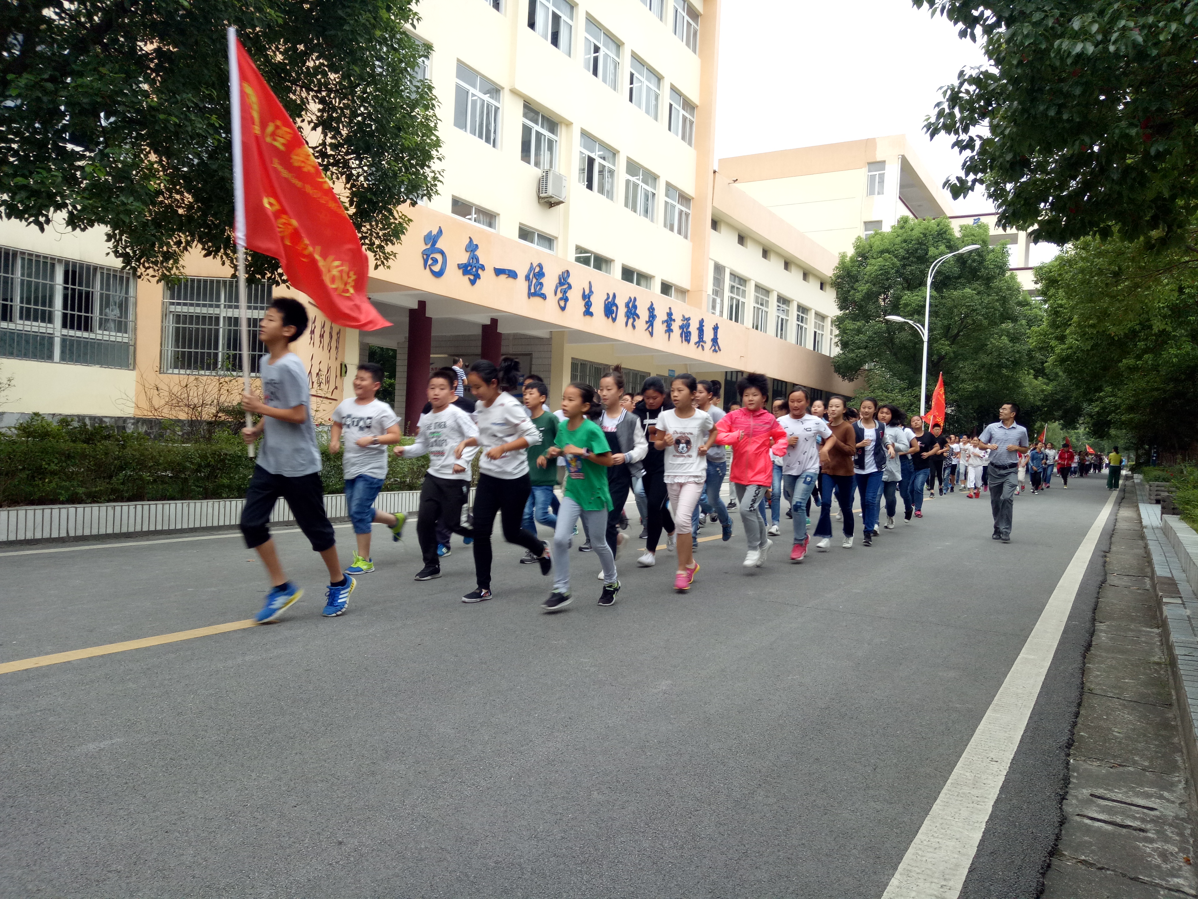 伴随着活泼轻快的音乐,同学们迈着整齐的步伐,迎着朝阳开始跑操。新入学的七年级和高一年级也加入到跑操的队伍当中。每周二至周五的跑操活动不仅能全面增强学生体质,也能体现学生和班级体良好的精神风貌,已经成为我校一道亮丽的特色风景线。