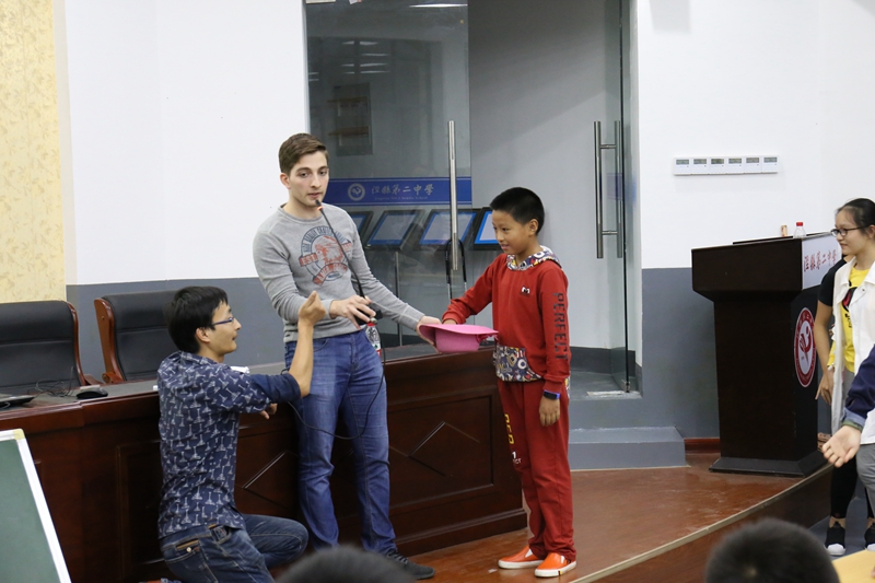 为了培养学生学习英语的兴趣,锻炼学生综合运用英语的能力,我校英语教研组在校长室和教科室的支持、指导下,与北京世纪学程取得联系,特邀请来两位外籍教师,分别于9月21日和22日下午课外活动时间在我校阶梯教室开展了两堂英语口语教学交流活动,英语组教师及七、八年级200余名学生参加了交流活动,同学们反响积极,取得了良好的教学效果。