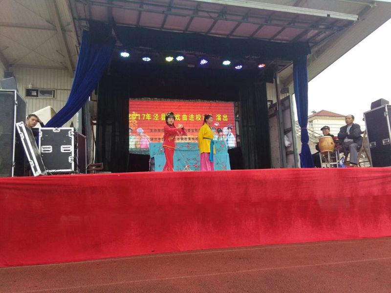 10月13日下午,泾县“戏曲进校园”二中专场演出活动在学校运动场顺利举行,副校长朱轶材及相关部门负责人、学校戏曲爱好者、非毕业班全体同学们集中观看了一场精彩的黄梅戏演出。