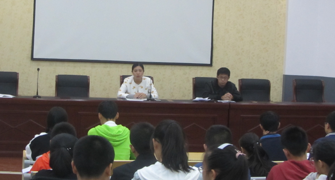 10月20日下午第三节班会课,我校在阶梯教室组织召开了全校团学干部工作会议。全校各班班长、团支部书记及部分校学生会干部参加会议。会议由校团委副书记吴凡主持。