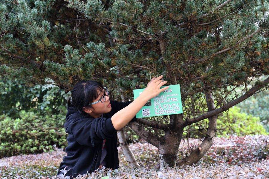 活动现场,学校教科室郭建华、生物组叶文静等老师带领高二年级部分同学,在具有专业知识的园艺师指导下,为学校的花草树木佩戴上专属“名片”。每张“名片”不仅标明花草树木的名称、种类、分布和产地等信息,还编辑了专属二维码,通过手机扫描二维码,即可了解其详细信息。师生们在挂牌之余还为一些小树修枝剪叶,助其健康成长。