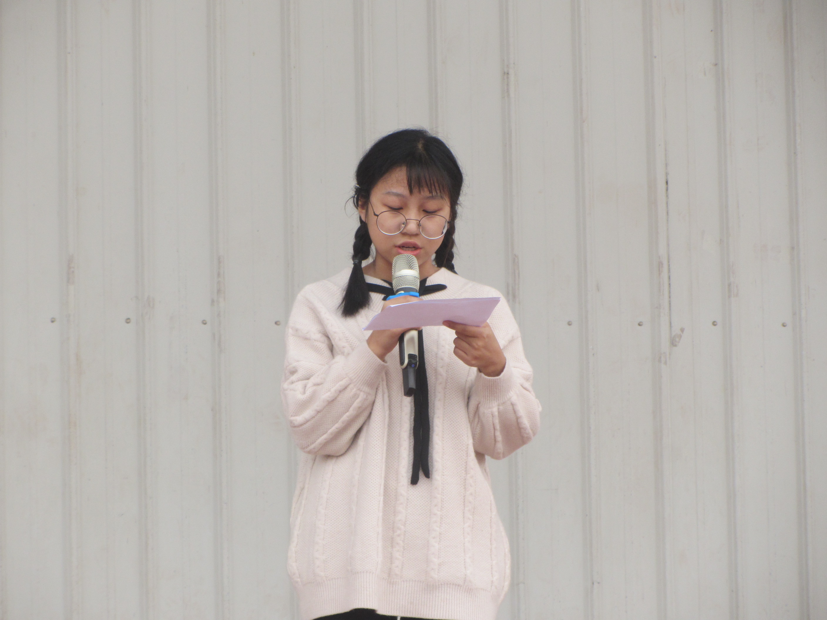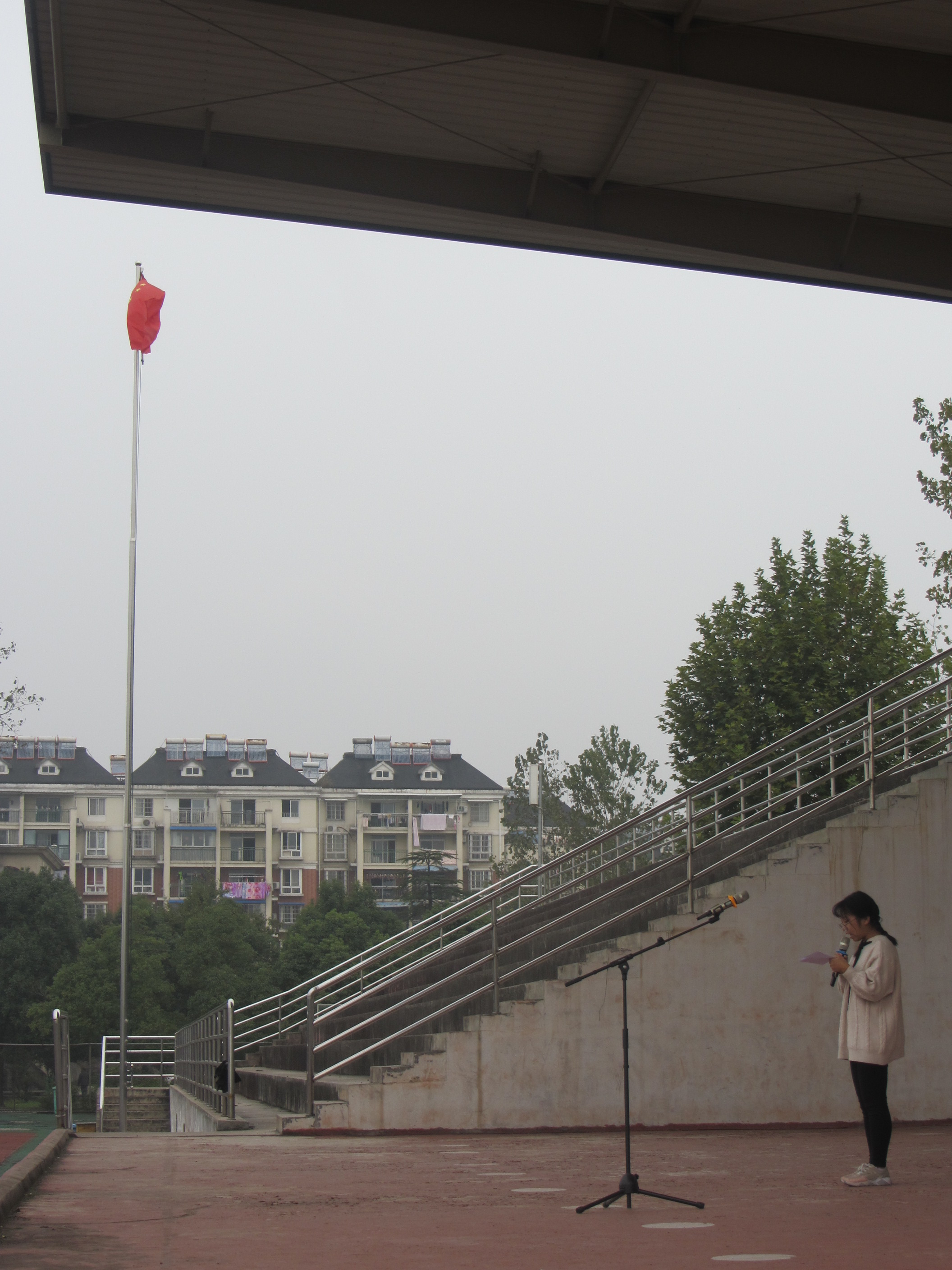 升旗仪式后,高二文科(2)班高洁同学以“身边的温暖”为主题进行国旗下讲话。
