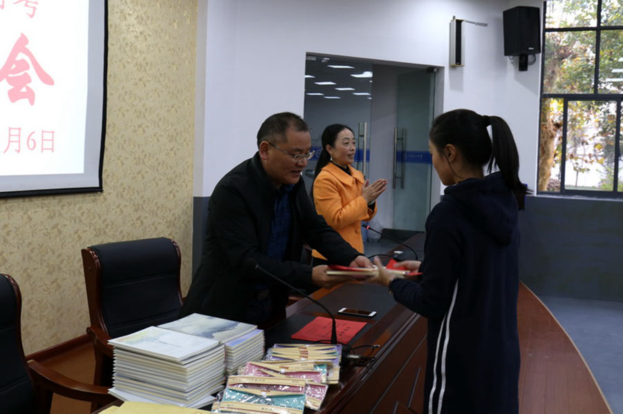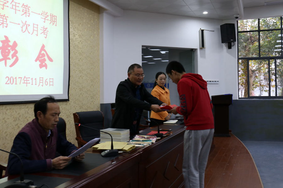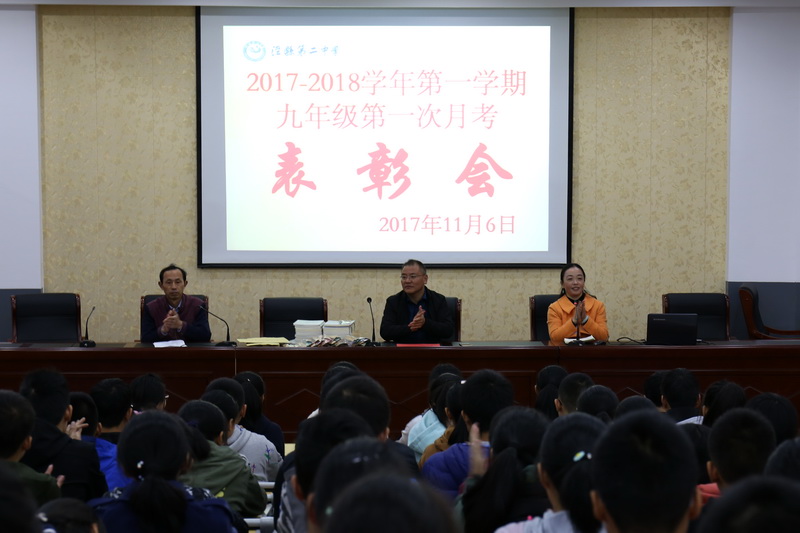 11月6日下午,我校在阶梯教室召开2017-2018学年第一学期九年级第一次月考表彰大会,黄政平校长、教导处吴福美副主任、九年级受表彰学生参加表彰大会,大会由教导处吴文君主任主持。