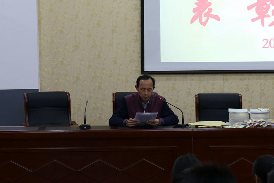 吴福美副主任宣读本次考试获得“年级之星”、“班级之星”和“进步之星”各奖项的学生名单。