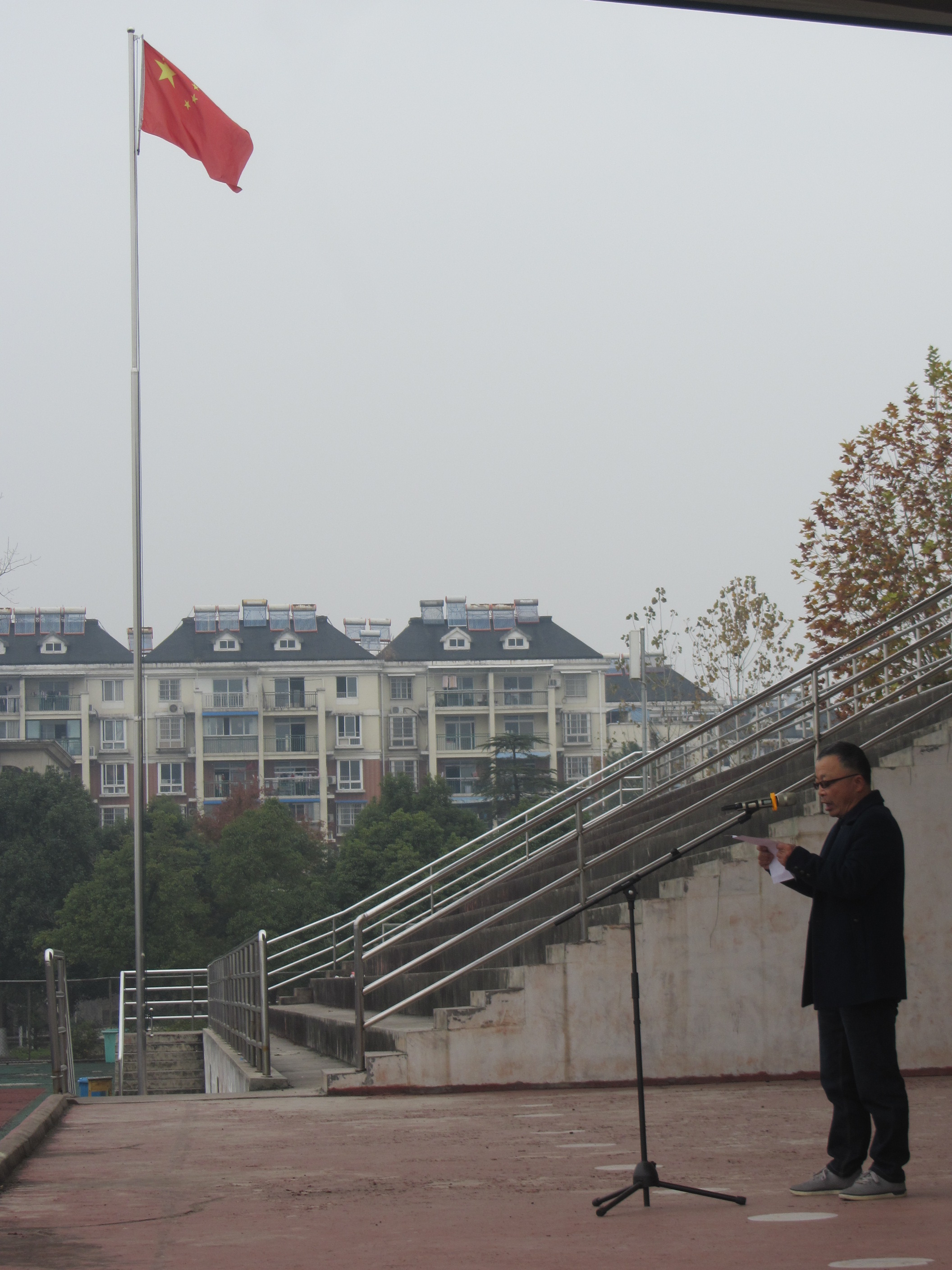 2017年11月13日,全校师生在运动场举行升旗仪式。