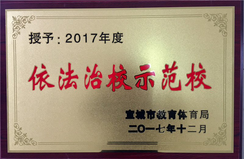 近日,我校被宣城市教育体育局授予“依法治校示范校”荣誉称号,这是继我校在2017年获得宣城市第二批“法律六进”示范点荣誉称号后取得的又一成果。