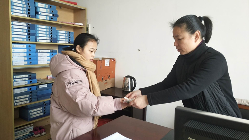 2018年3月1日上午课间操时间,校资助中心在资助中心办公室完成了泾县二中——中国电信泾县分公司2017年第四季度爱心资助金的发放。资助中心施主任把爱心资助金发放到四位学生手中的同时转达了来自电信公司爱心捐助的党员干部的鼓励,并叮嘱学生努力进取,不辜负大家期望。