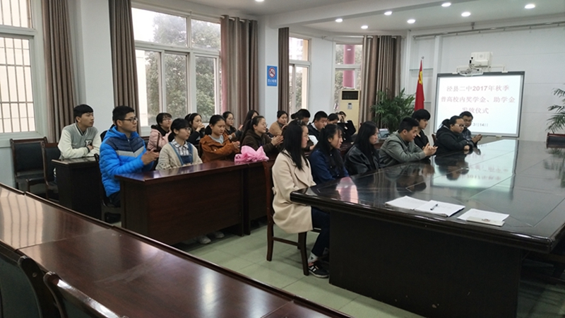 2018年3月14日上午大课间,泾县二中2017年秋季普高校内奖学金及助学金发放仪式在校第一会议室举行。与会是副校长章璋、资助中心工作人员和校内奖学金、助学金获得者。