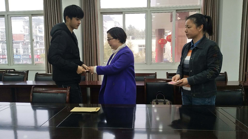 最后副校长章璋和施宏主任将现金一一发放至学生手上,叮嘱他们注意保管,告知家长及班主任,合理利用,学习上再接再厉,更上层楼。