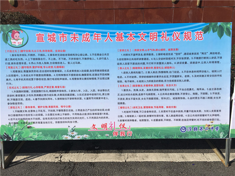 为创建文明和谐校园,全面提升二中学子思想道德素质和文明礼仪素养,根据上级文件精神要求,结合我校实际,新学期开学以来,我校开展了一系列教育活动: