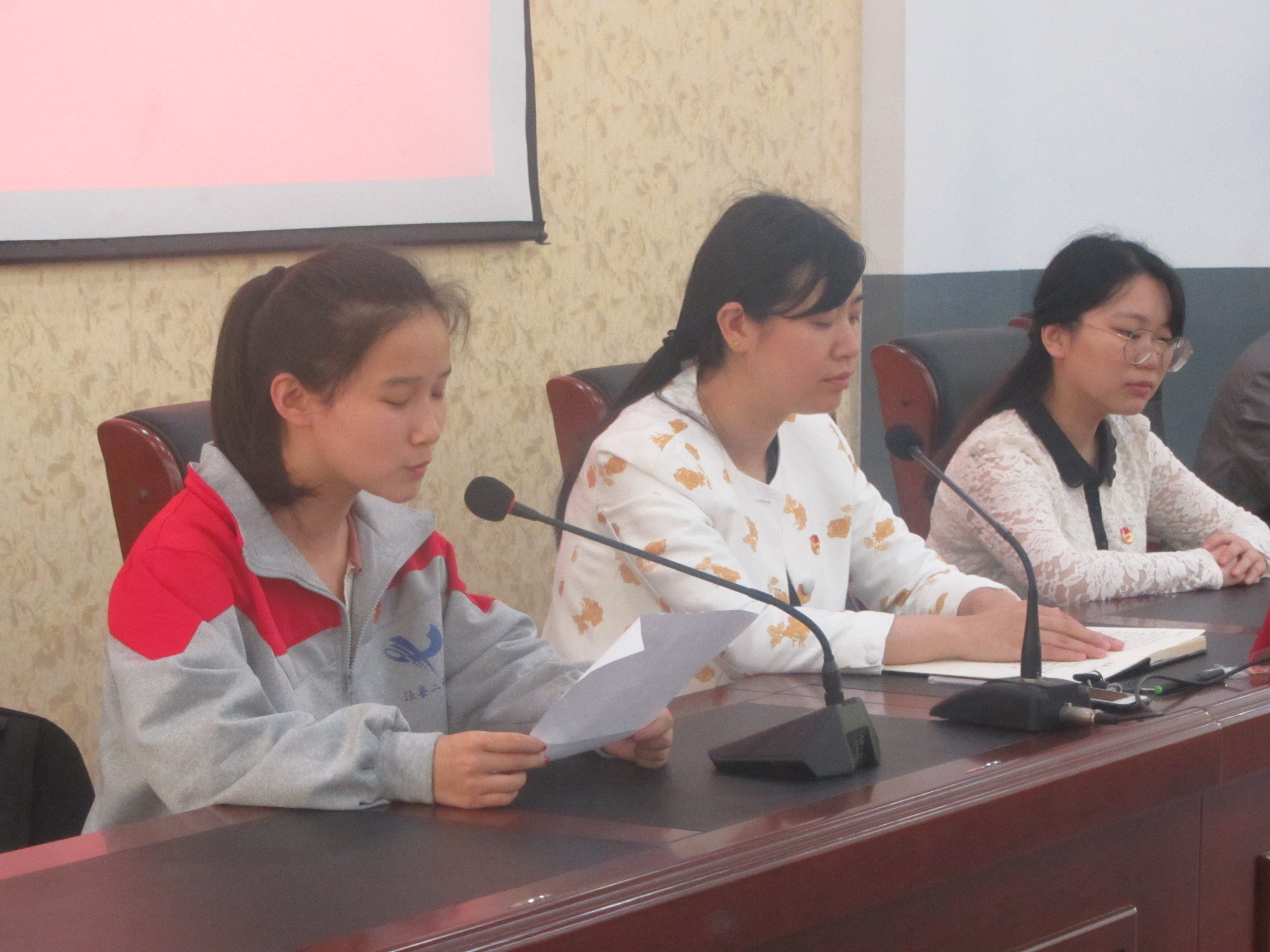 盛涓淇同学详细宣读了《团章》中有关团员应履行的义务和享有的权利,新团员代表张元月、老团员代表俞淑贤分别作了发言,表示要从自身实际出发,在今后的学习生活中将以身作则,时刻起到模范带头作用,做合格共青团员。