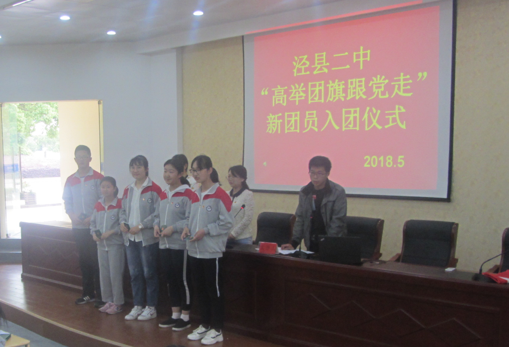 为进一步加强我校团员意识教育,深化团的自身建设,我校于5月2日中午在校阶梯教室举行了“高举团旗跟党走”新团员入团仪式。团县委学少部部长朱彦同志、校团委副书记吴凡、校团委徐盛昊老师、高一、高二年级各班老团员、八年级各班新团员参加了此次仪式。
