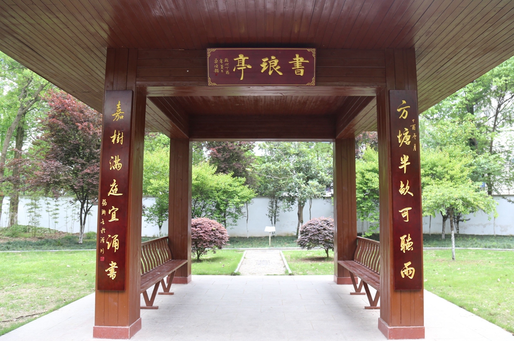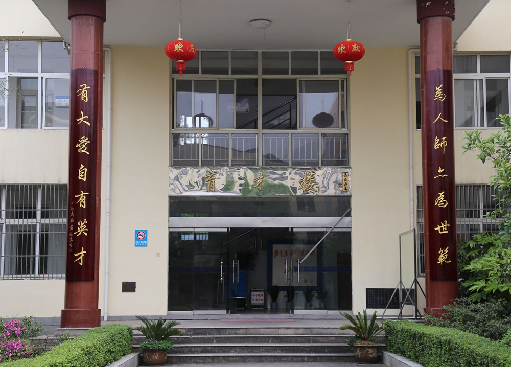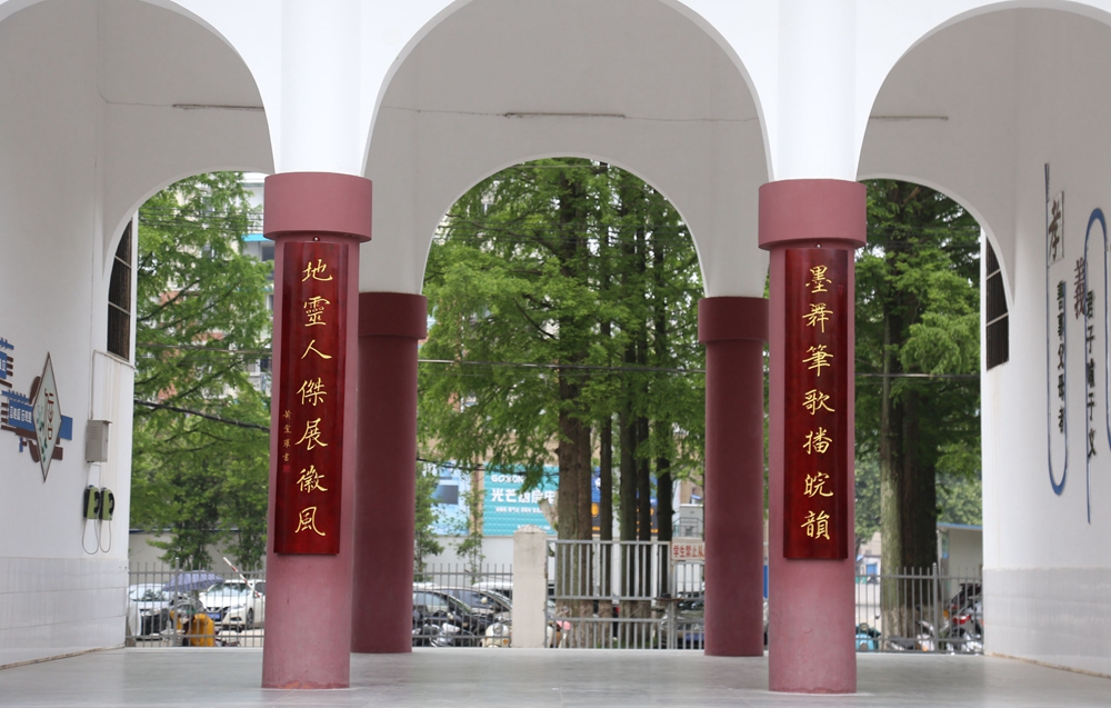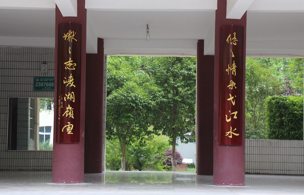 今年4月,我校“四色文化进校园”文化建设工作组完成了校园文化楹联的创作和挂牌工作。校园文化楹联创作是“四色文化进校园”文化建设工作的重要组成部分,工作组经过了前期的广泛征集和集体创作、个人创作并行的阶段,获得了一批能体现我校特色、泾县地方特色的楹联。在17-18学年初,工作组将部分成果呈现在学校广大师生面前,在学校行政楼、教学楼及书琅亭廊柱上进行了张贴和再次征集意见。其后,又特别邀请了萧俊飞、张渊、甄茂荣等我县一批精通楹联文化和书法的大家,就楹联进行斧正和书法创作。最后经过精心的设计和制作后,红底金字的木质楹联才正式挂牌,呈现在师生面前,与教学楼主体色调保持一致,特别是与古色古香的书琅亭相得益彰,成为学校一道亮丽的风景线,又是学校文化的一张特色“名片”。