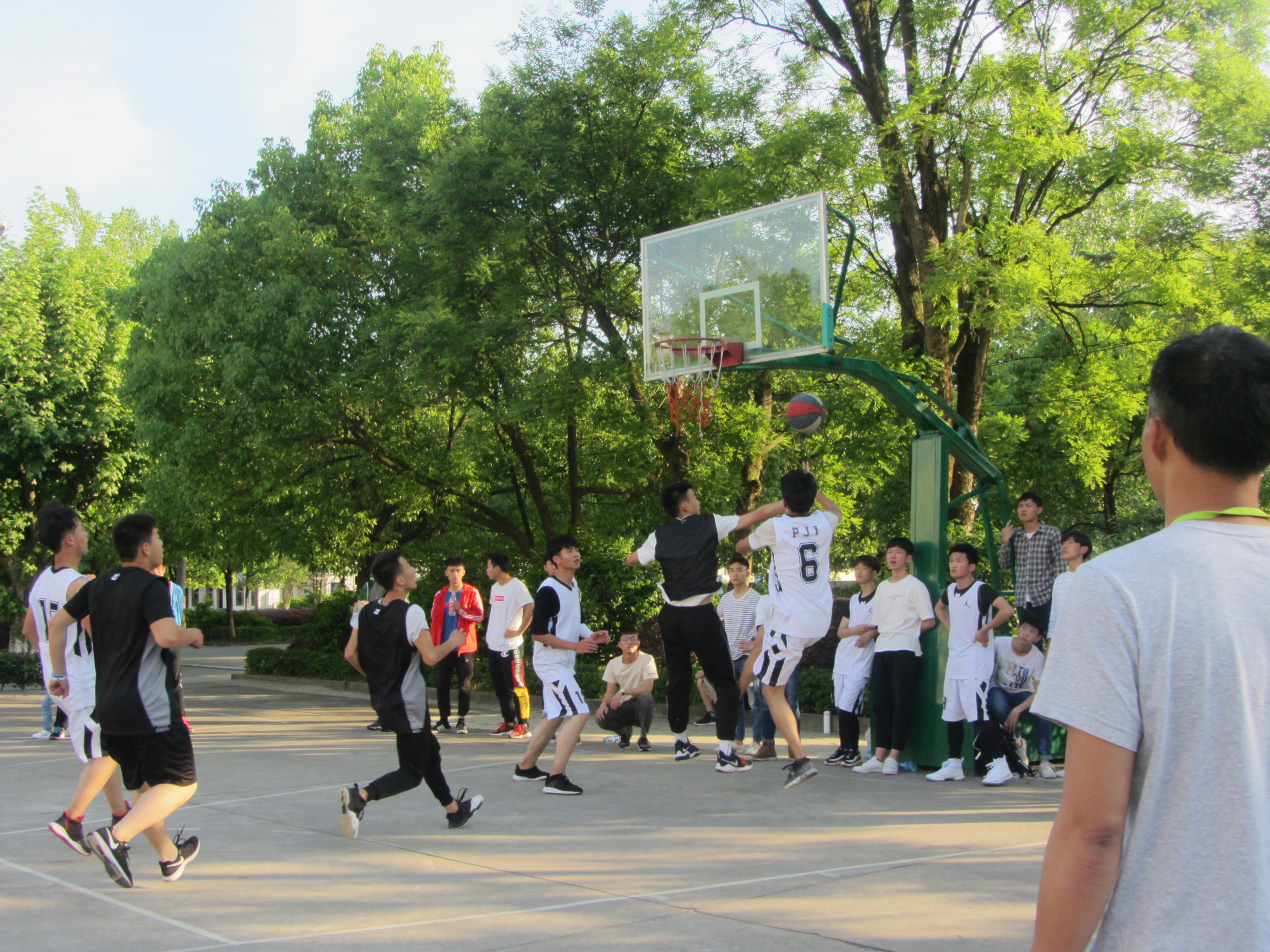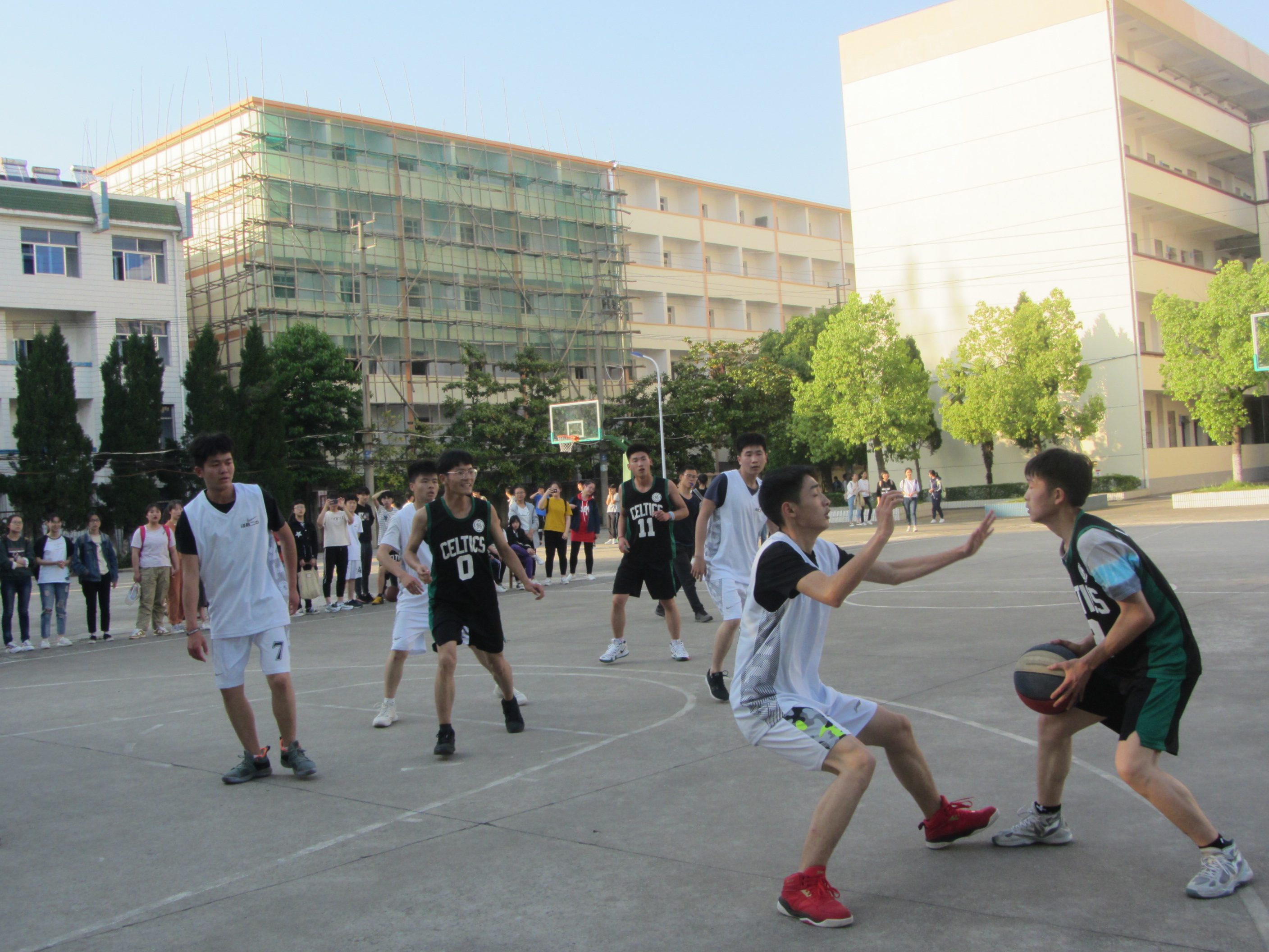 为增强学生体质、丰富学生的课余生活,5月2日下午课外活动时间,由我校体艺处主办的第五届高二年级男子篮球赛顺利开赛。副校长朱轶材为比赛开球,学校相关部门领导及师生观看比赛。